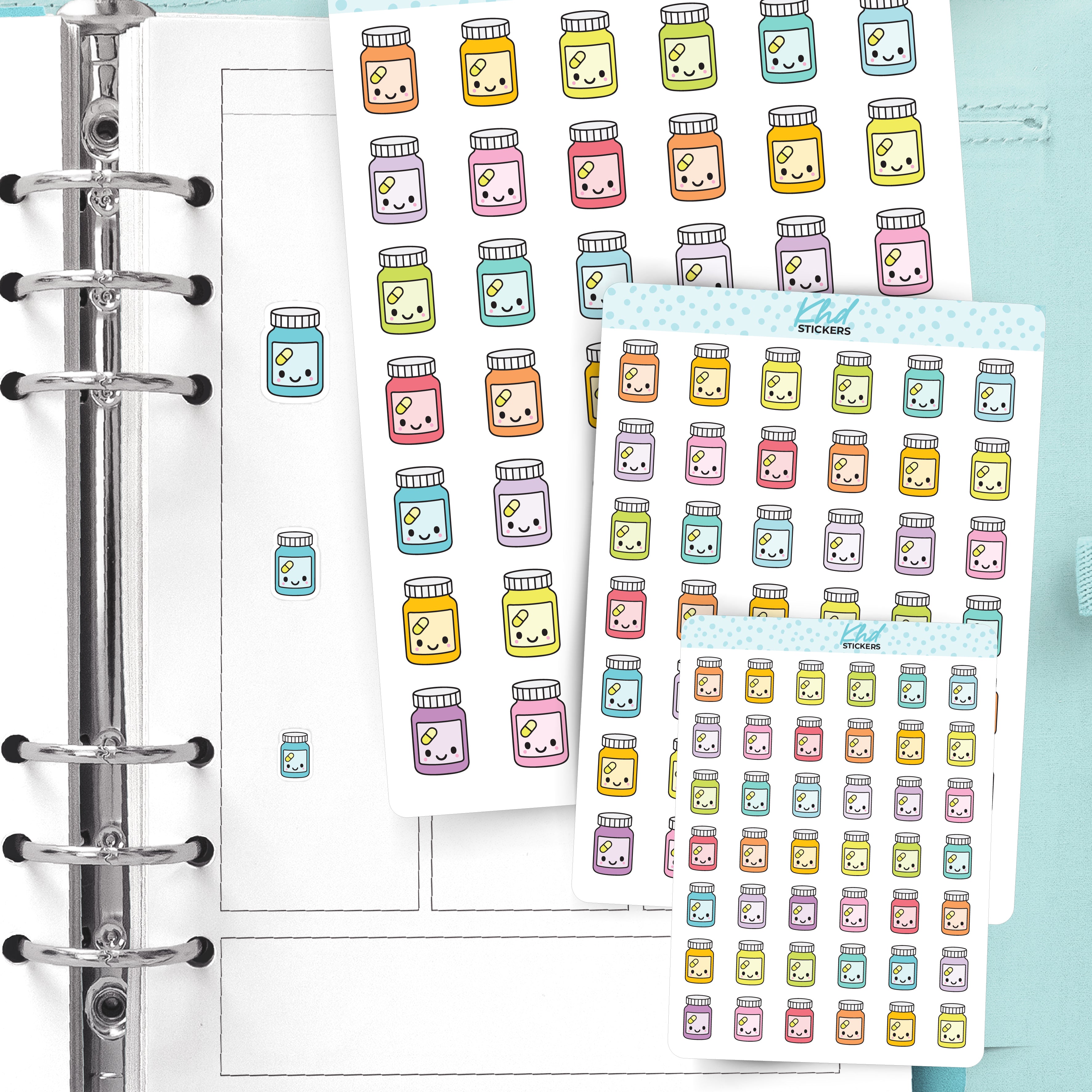 Track meds, vitamins, or supplements with these pastel tablet icons for planners.