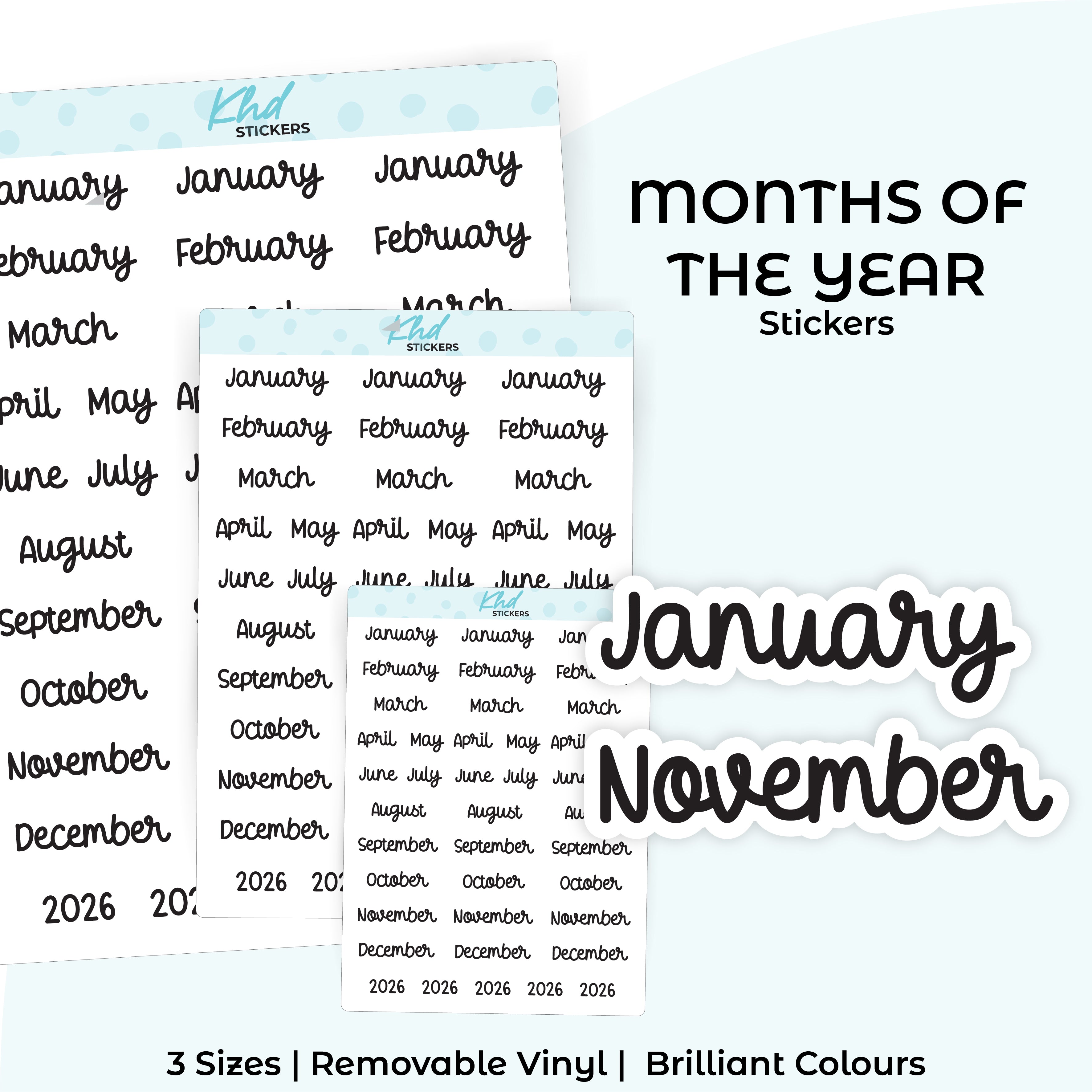 Months of the Year – Script Stickers for Planners