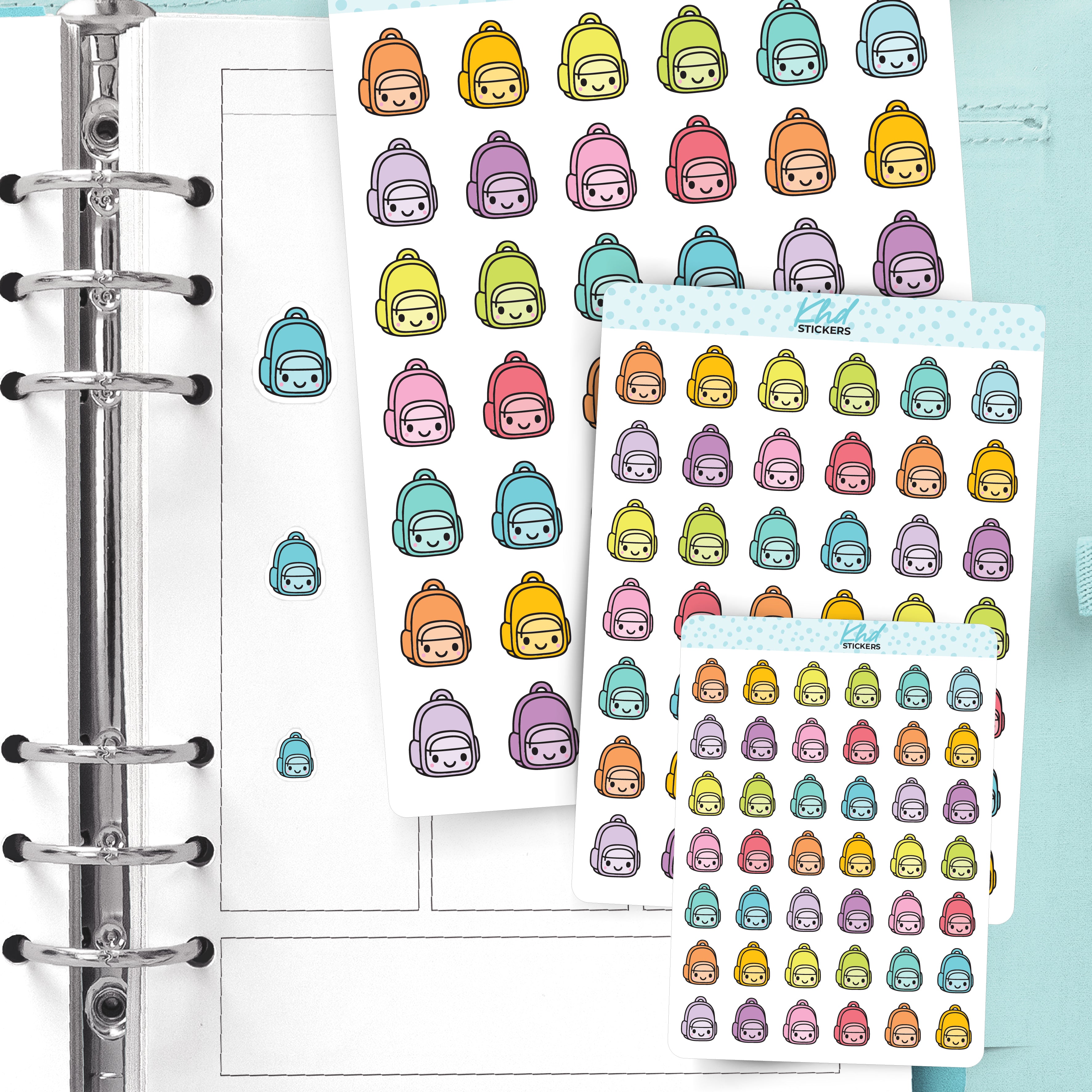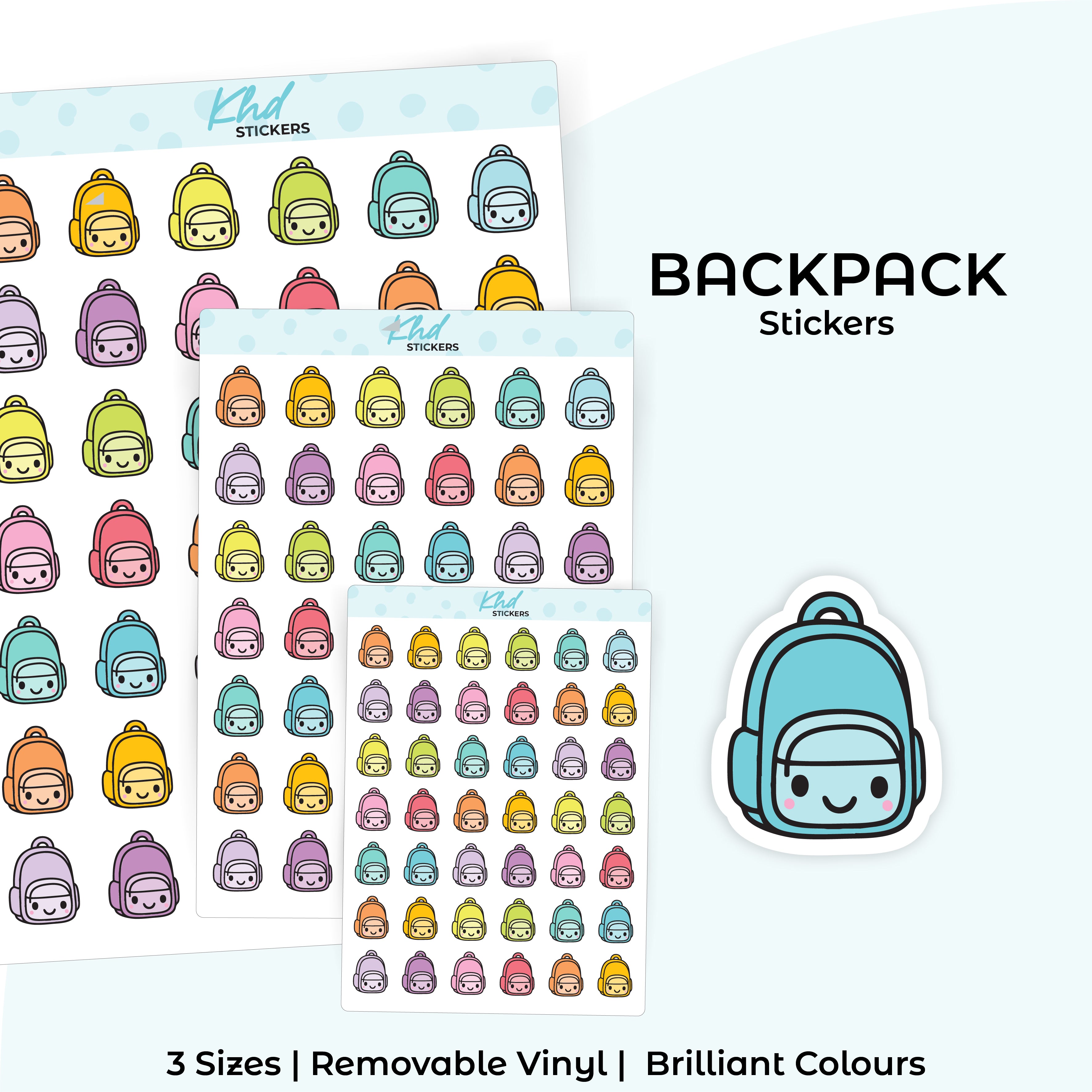 These adorable Stickers feature hand-drawn backpacks illustrations in our signature pastel palette. Perfect for diaries, planners, and journals.