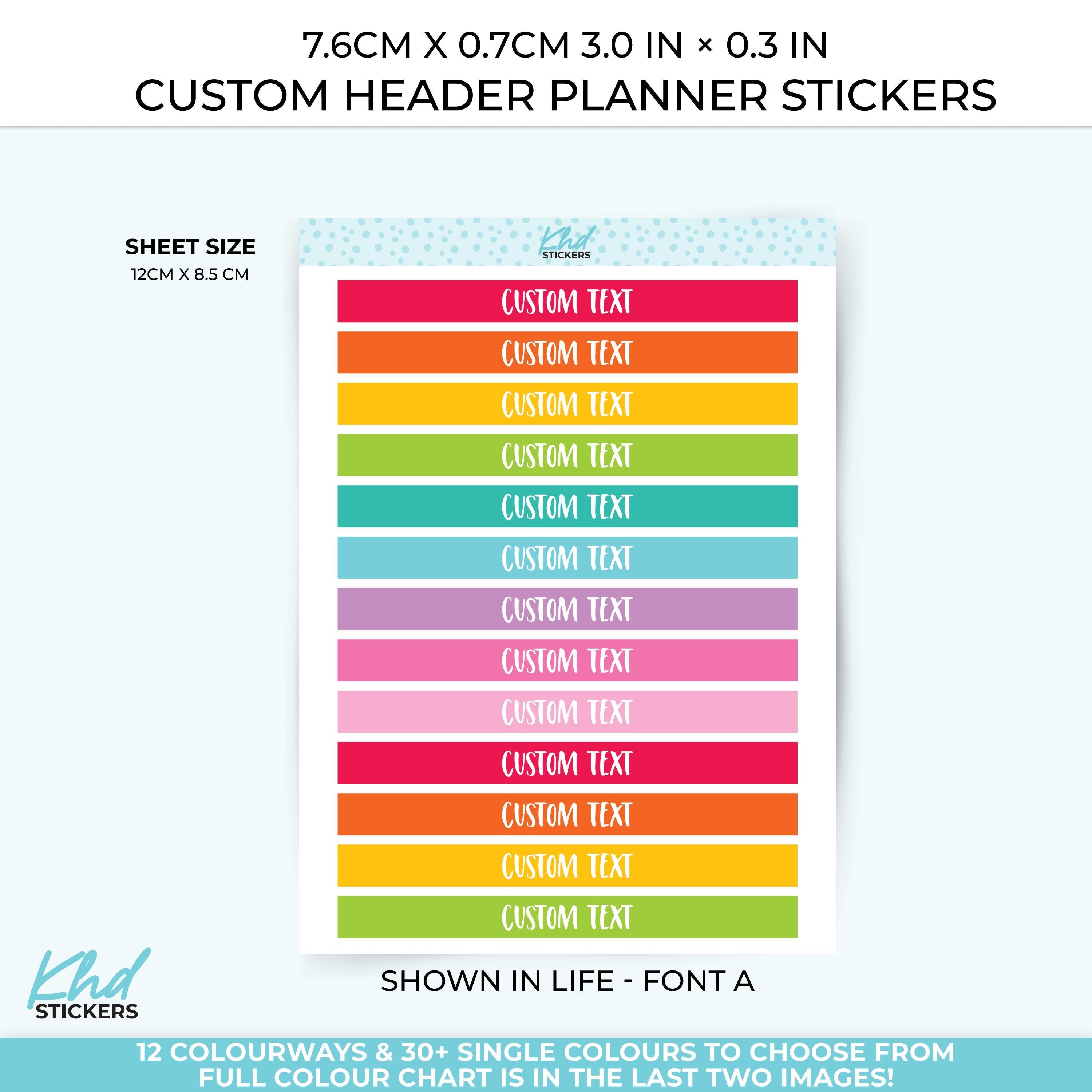 Custom Header Stickers - 7.2cm x 0.7cm - 3" x ~0.5"