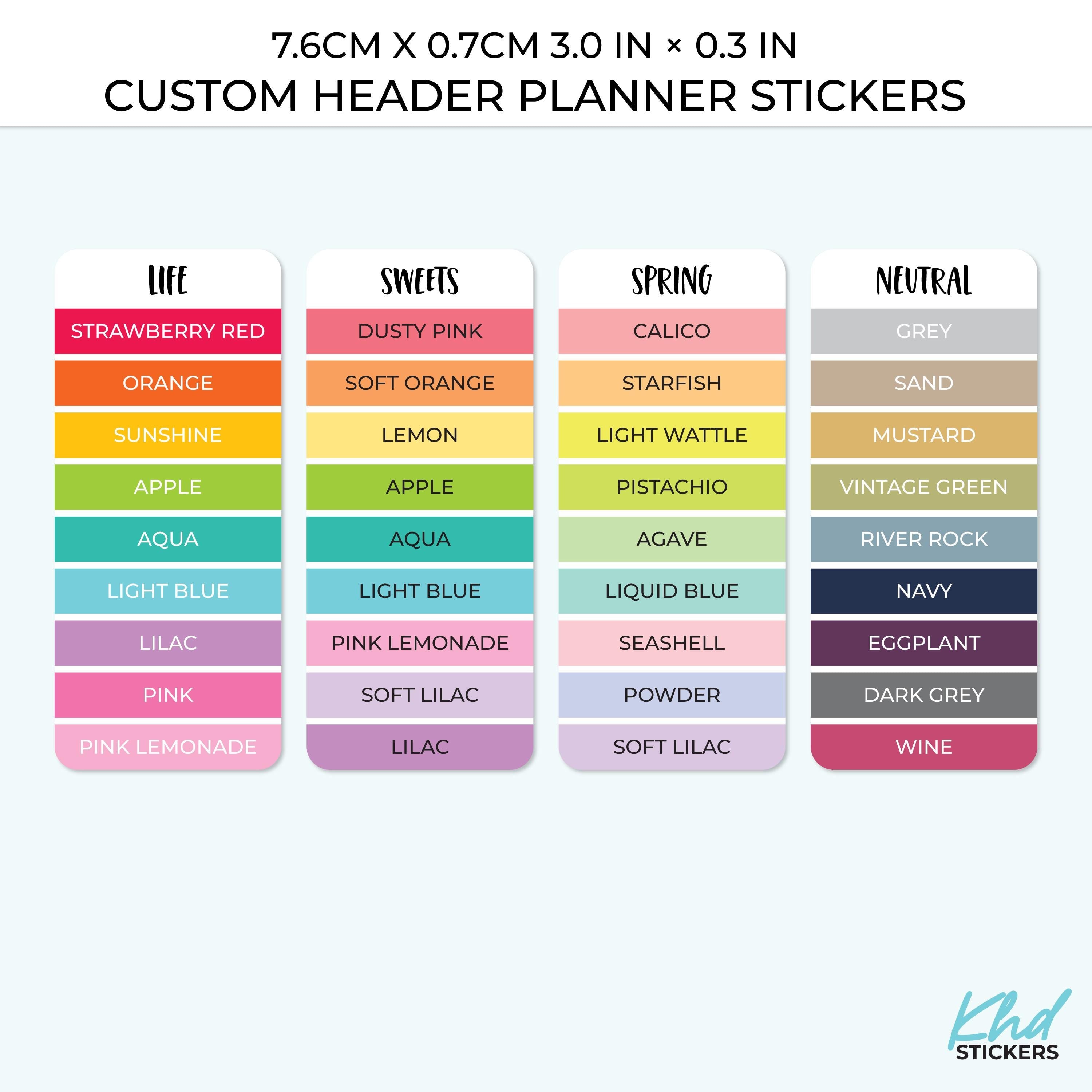 Choose your colourway, font selection and coordinate the headers in your planner.