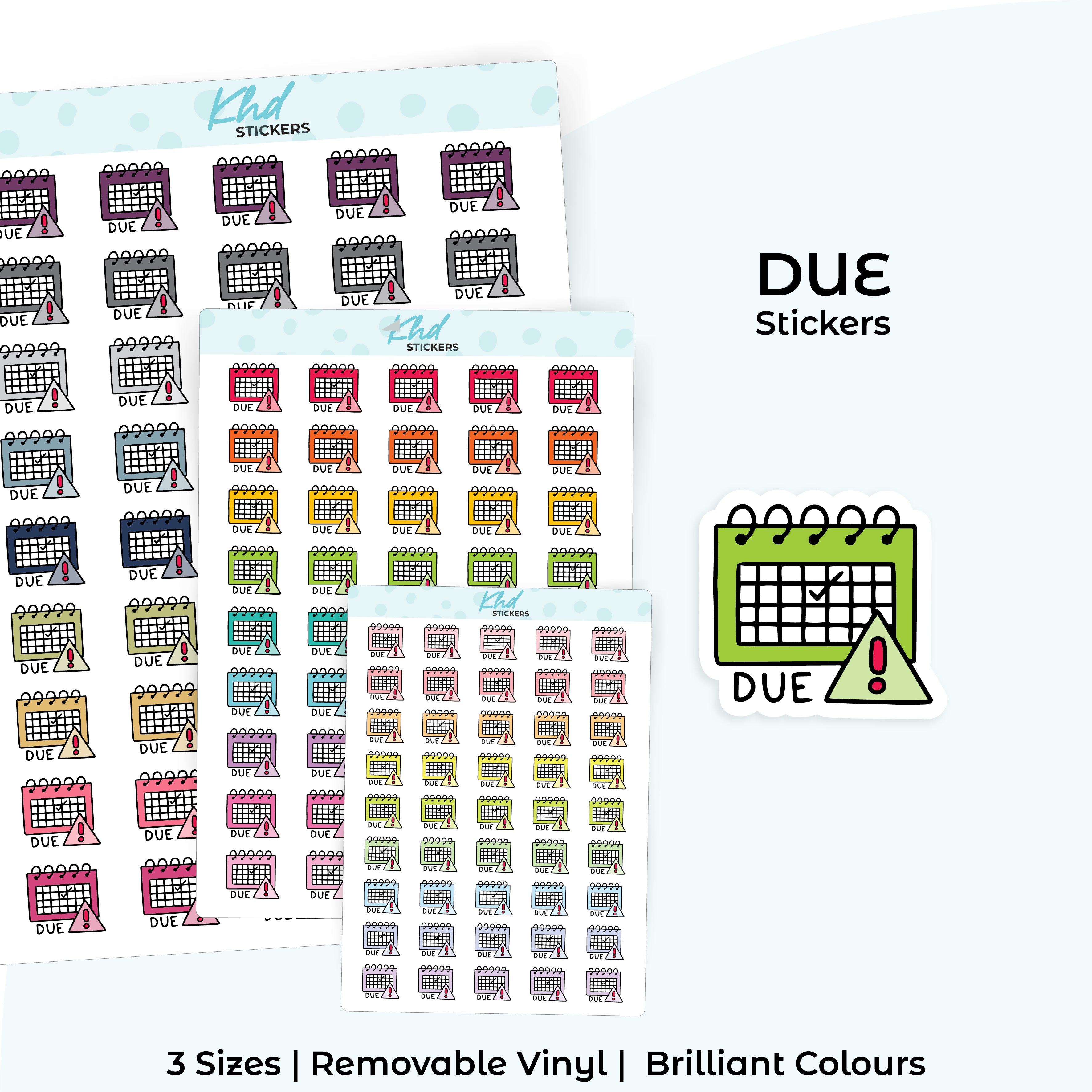 Due Planner Stickers. Select from one of 4 colourways, or select a sheet of your favourite colour. Available in three great sizes making it easy to match your planning style.