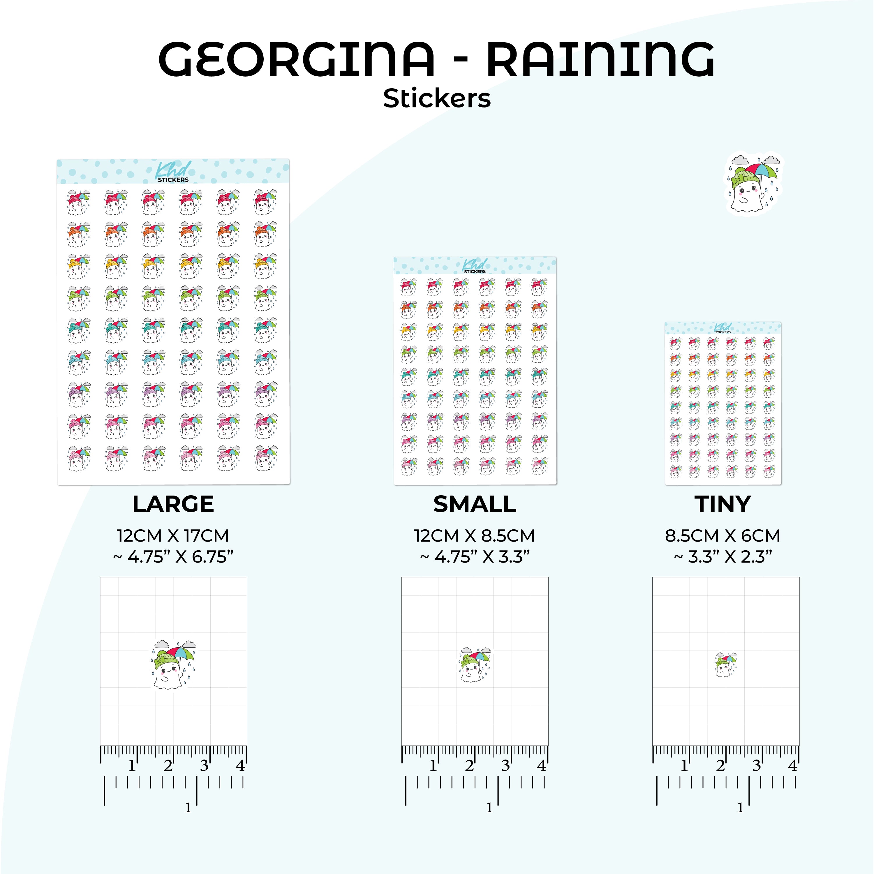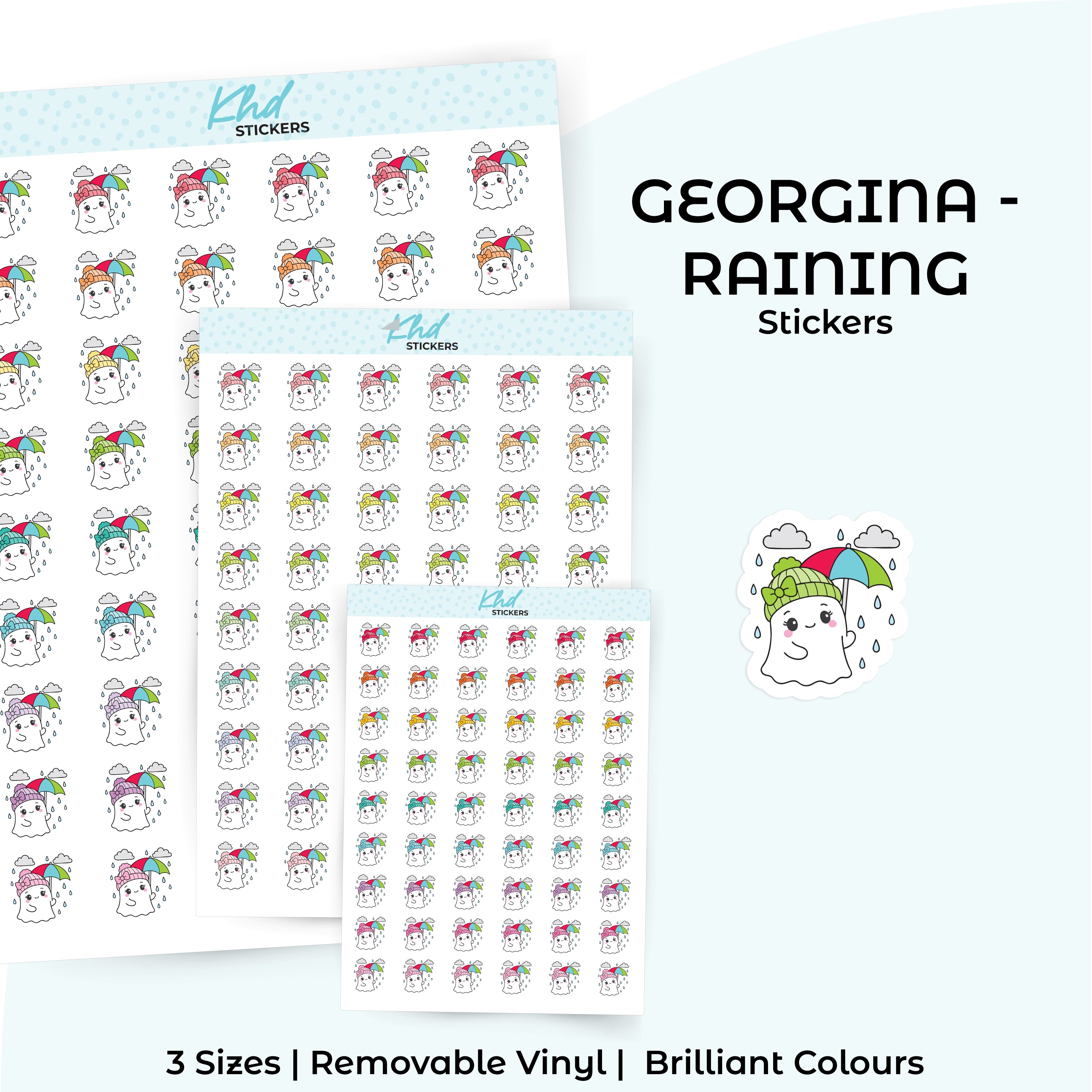 Georgina in the rain to track rainy days and wet weather plans in your planner or diary.