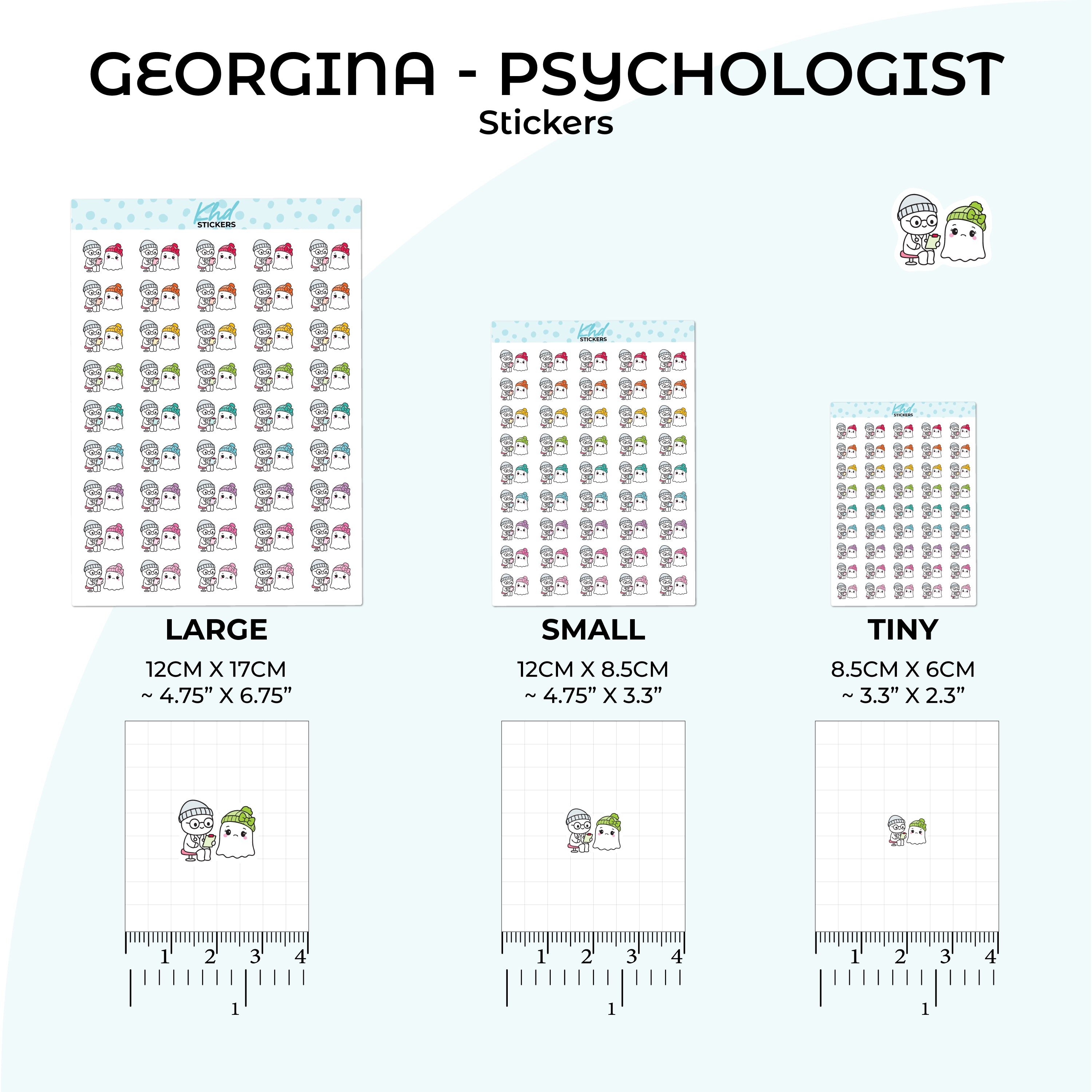 Georgina visiting the psychologist to schedule therapy sessions and mental health check ins in your planner or diary.