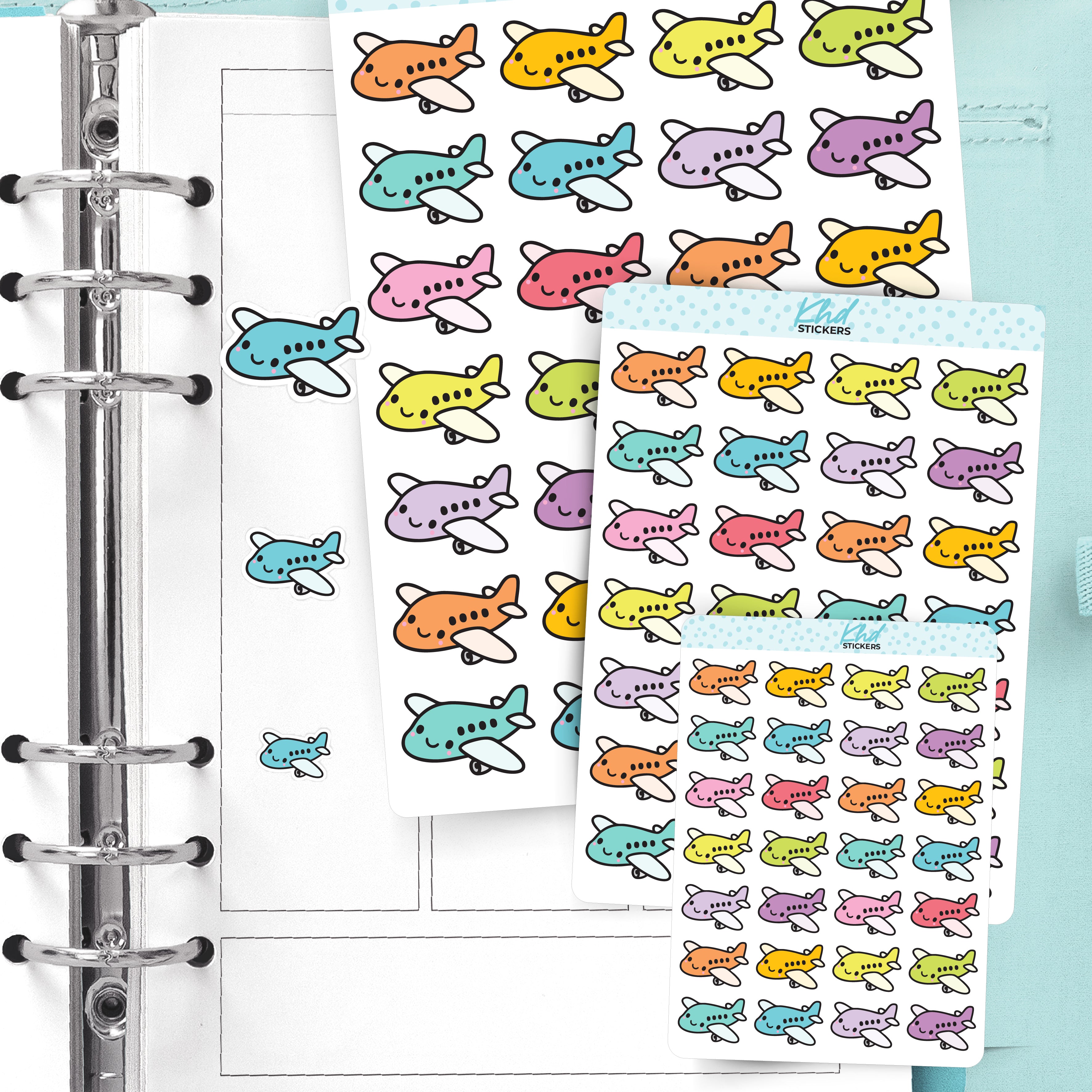 Time to take off! These Kawaii Airplane stickers are perfect for marking holidays, flight days, airport runs, and all your travel plans. Each little plane comes in a soft pastel colour with a sweet smile – because even packing day deserves a bit of cute.