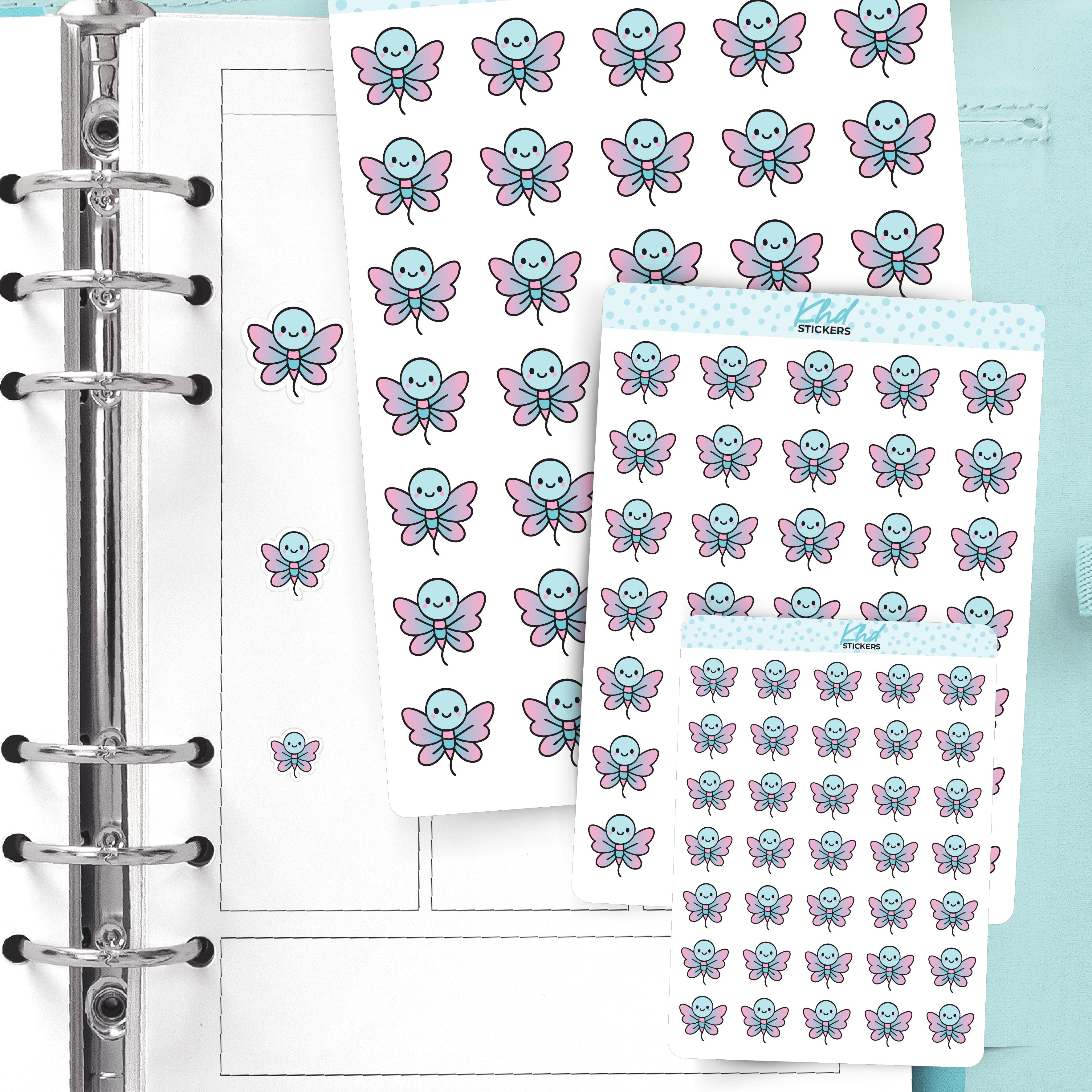 Kawaii Dragonflies – Pink & Blue Planner Stickers