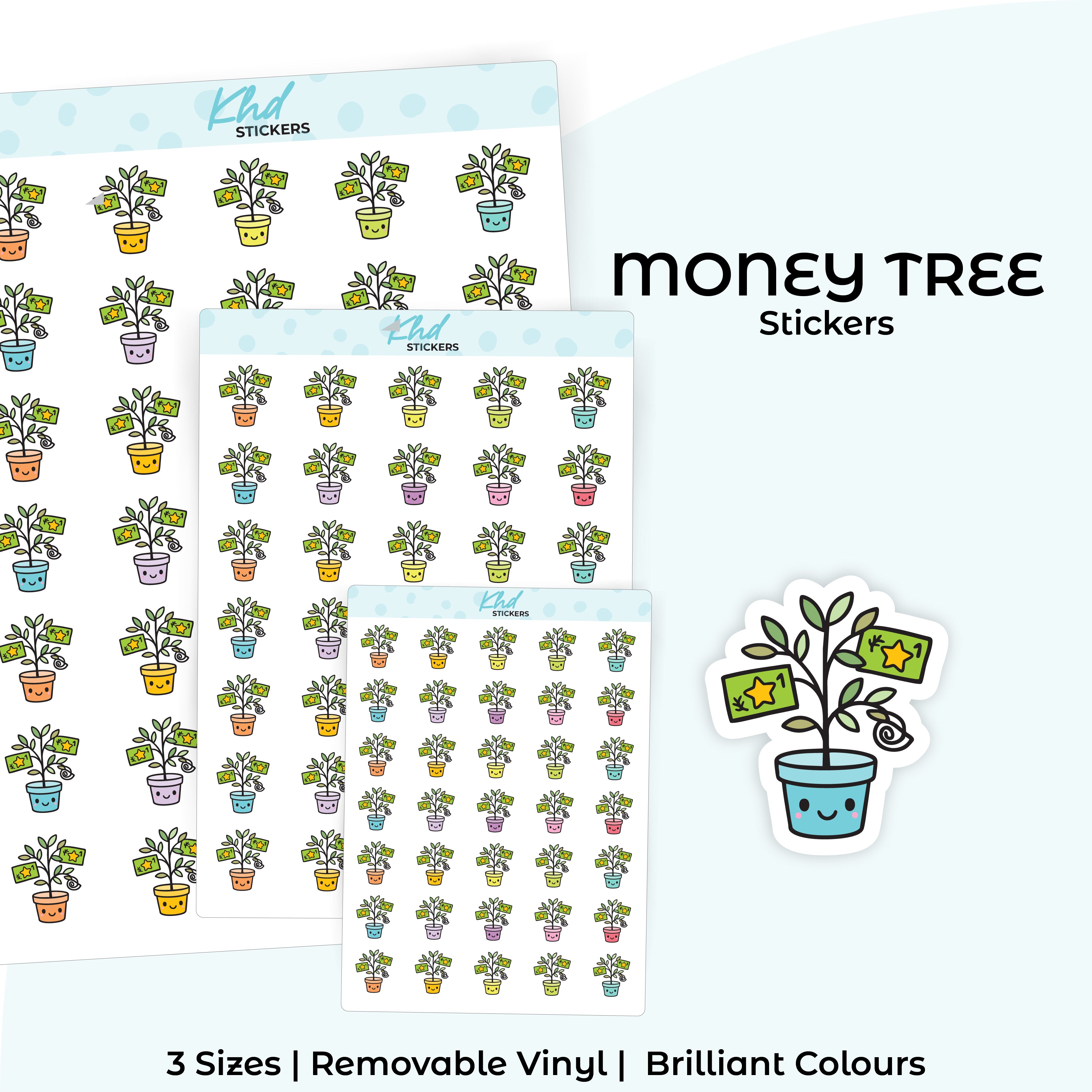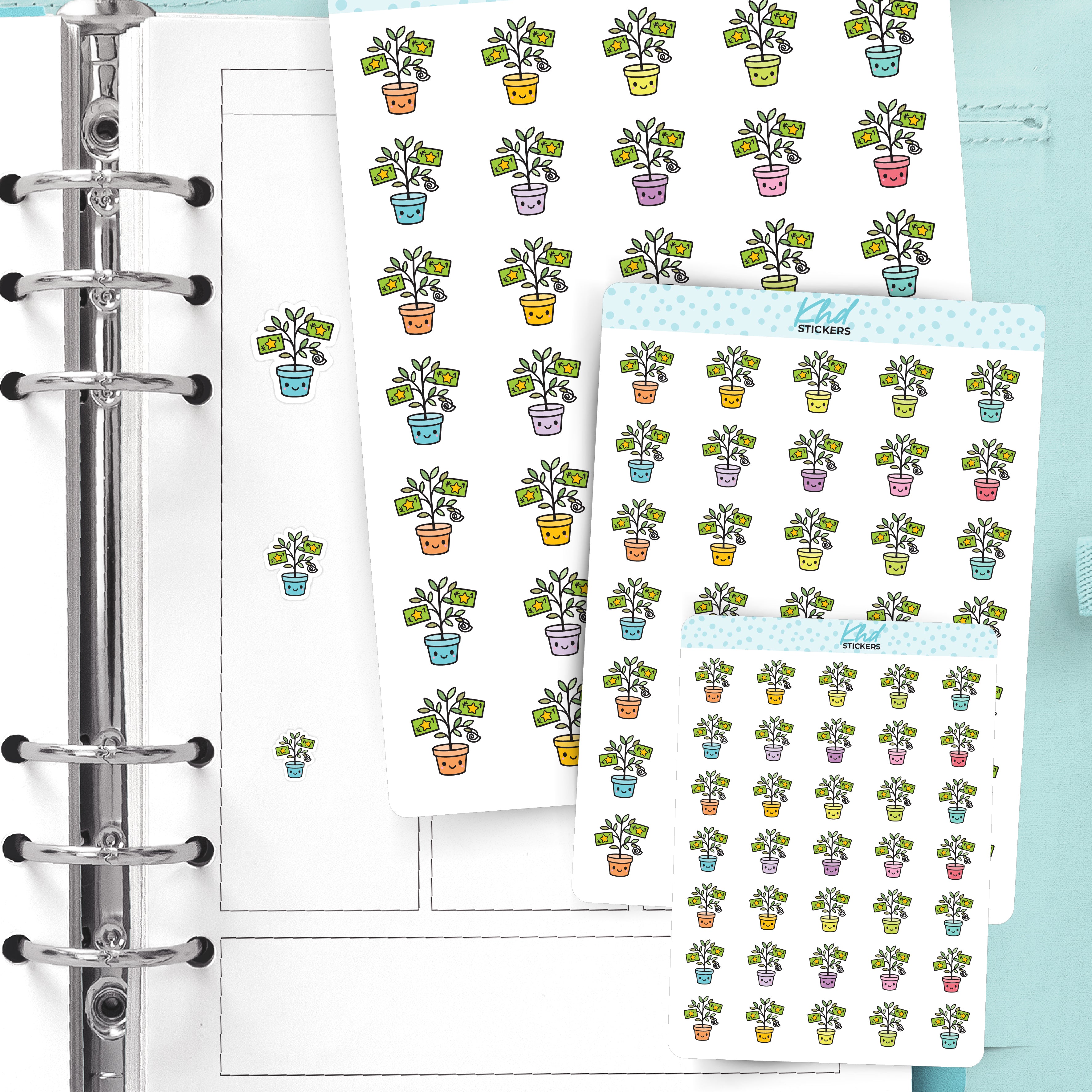 These cute, kawaii-style money tree stickers are a cheerful way to highlight savings goals, paydays, or budgeting plans. Their friendly design adds motivation while keeping your planner looking neat and organised. Perfect for planners, diaries, and journals focused on money management.