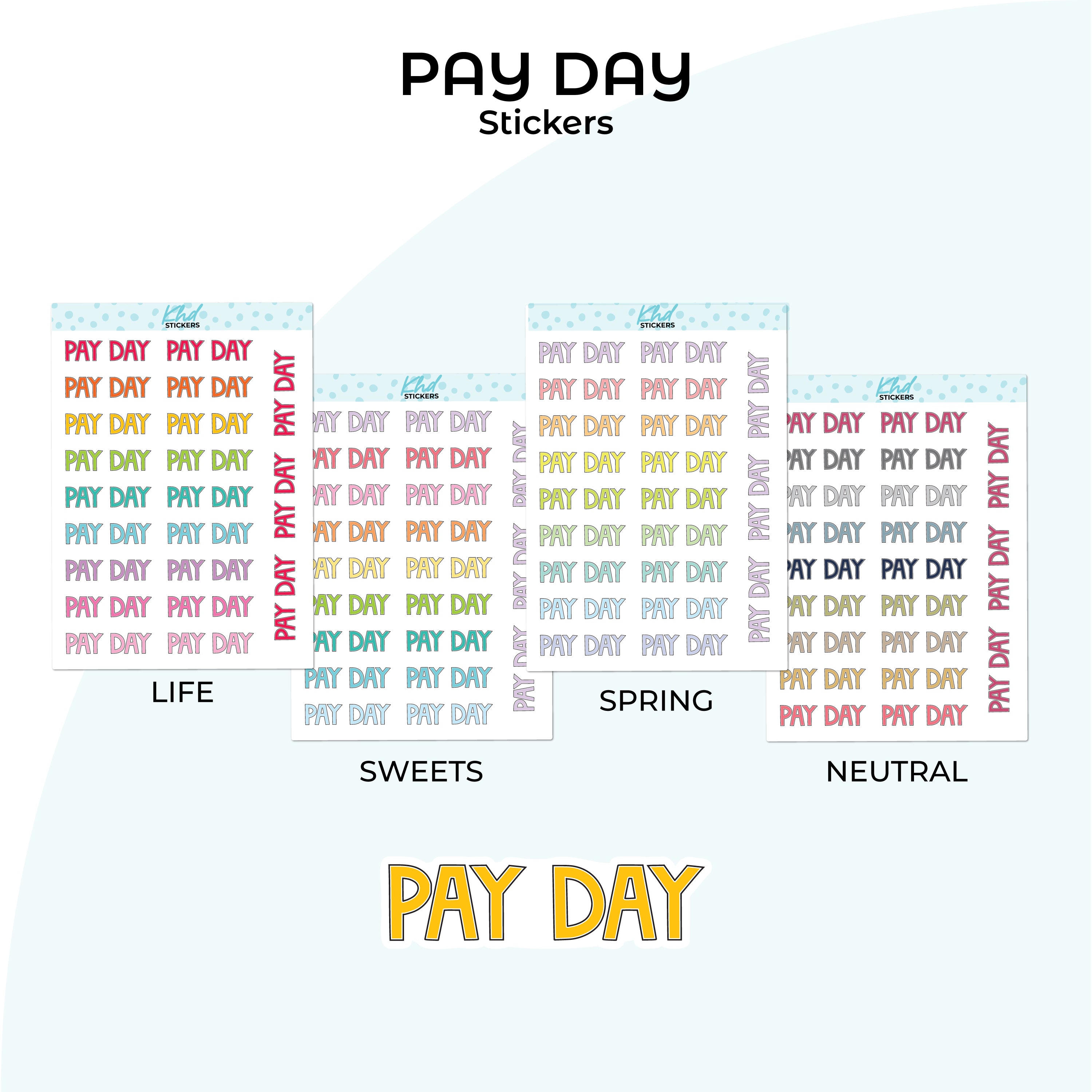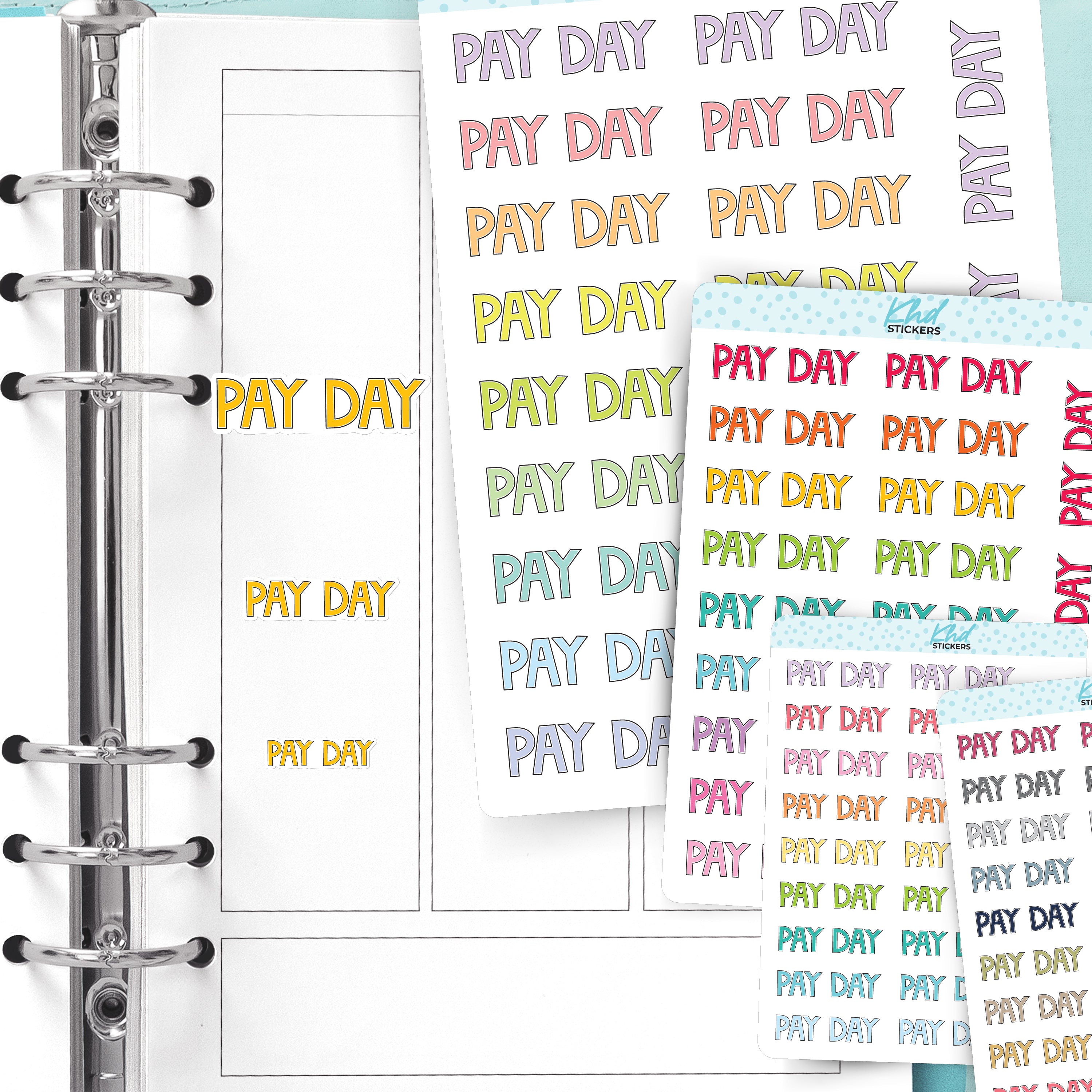 Pay Day Planner Stickers. Select from one of 4 colourways, or select a sheet of your favourite colour. Available in three great sizes making it easy to match your planning style.