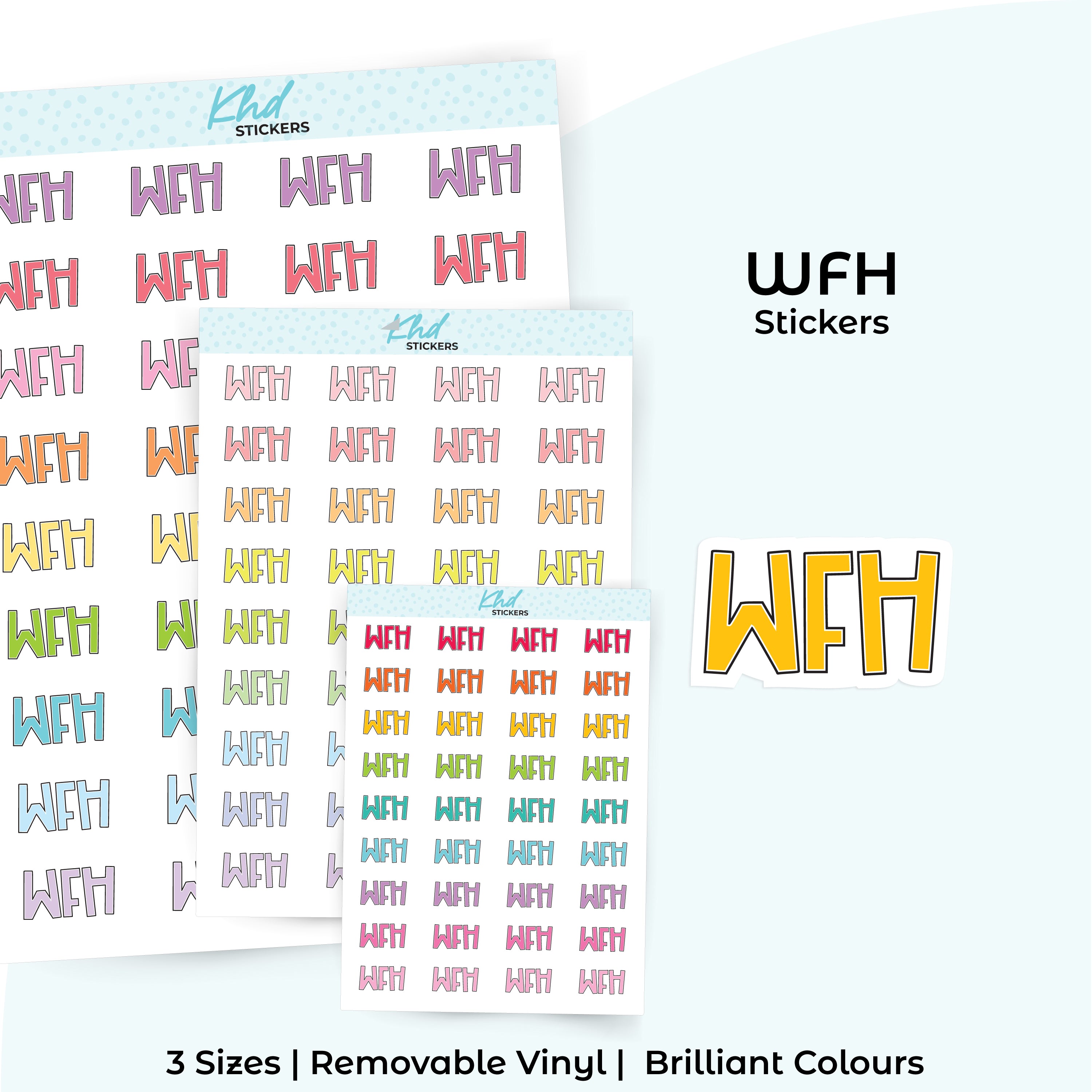 WFH (Work From Home) Planner Stickers. Select from one of 4 colourways, or select a sheet of your favourite colour. Available in three great sizes making it easy to match your planning style.