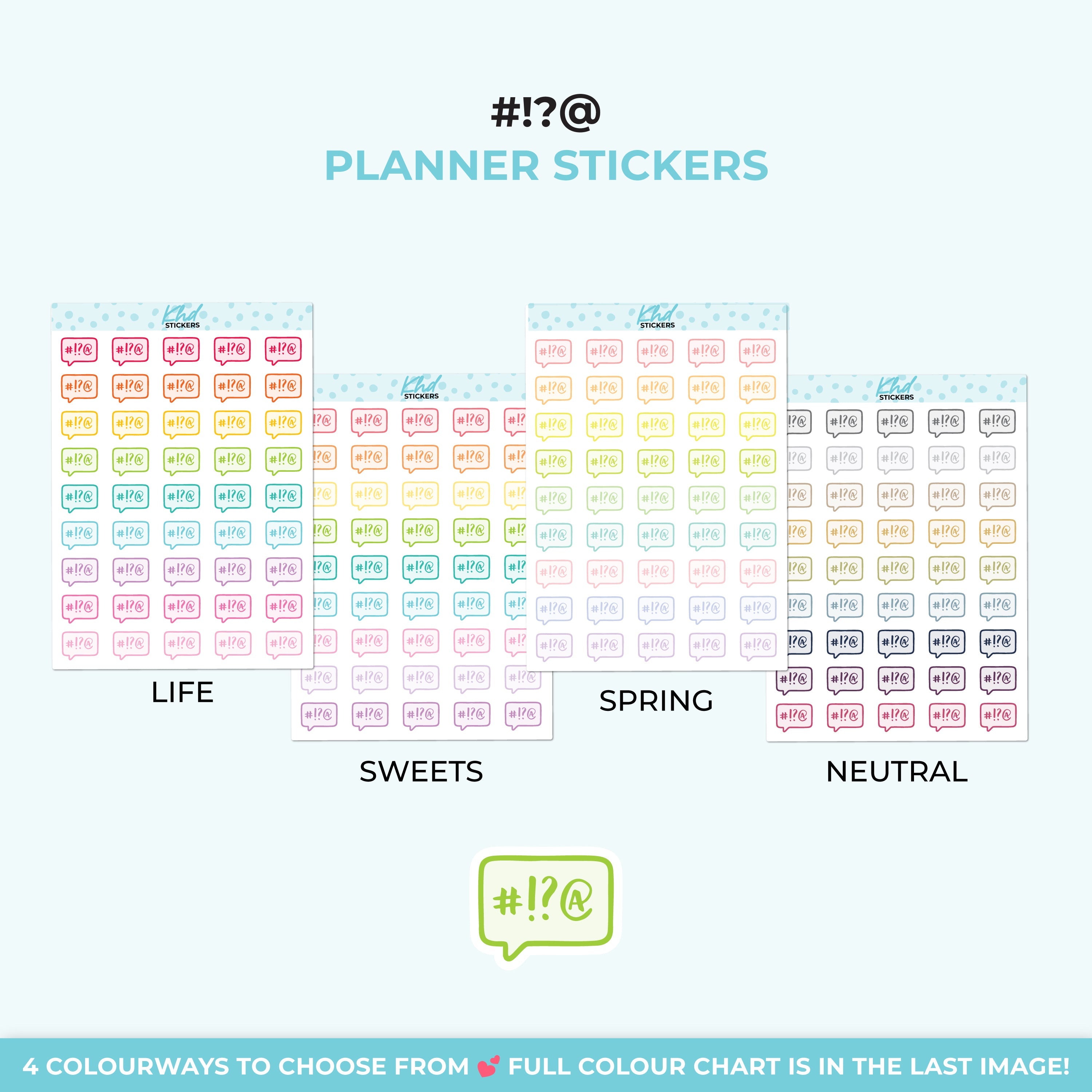#!?@ Planner Stickers in three sizes and 35 colourways. Removable, smooth-matte finish.