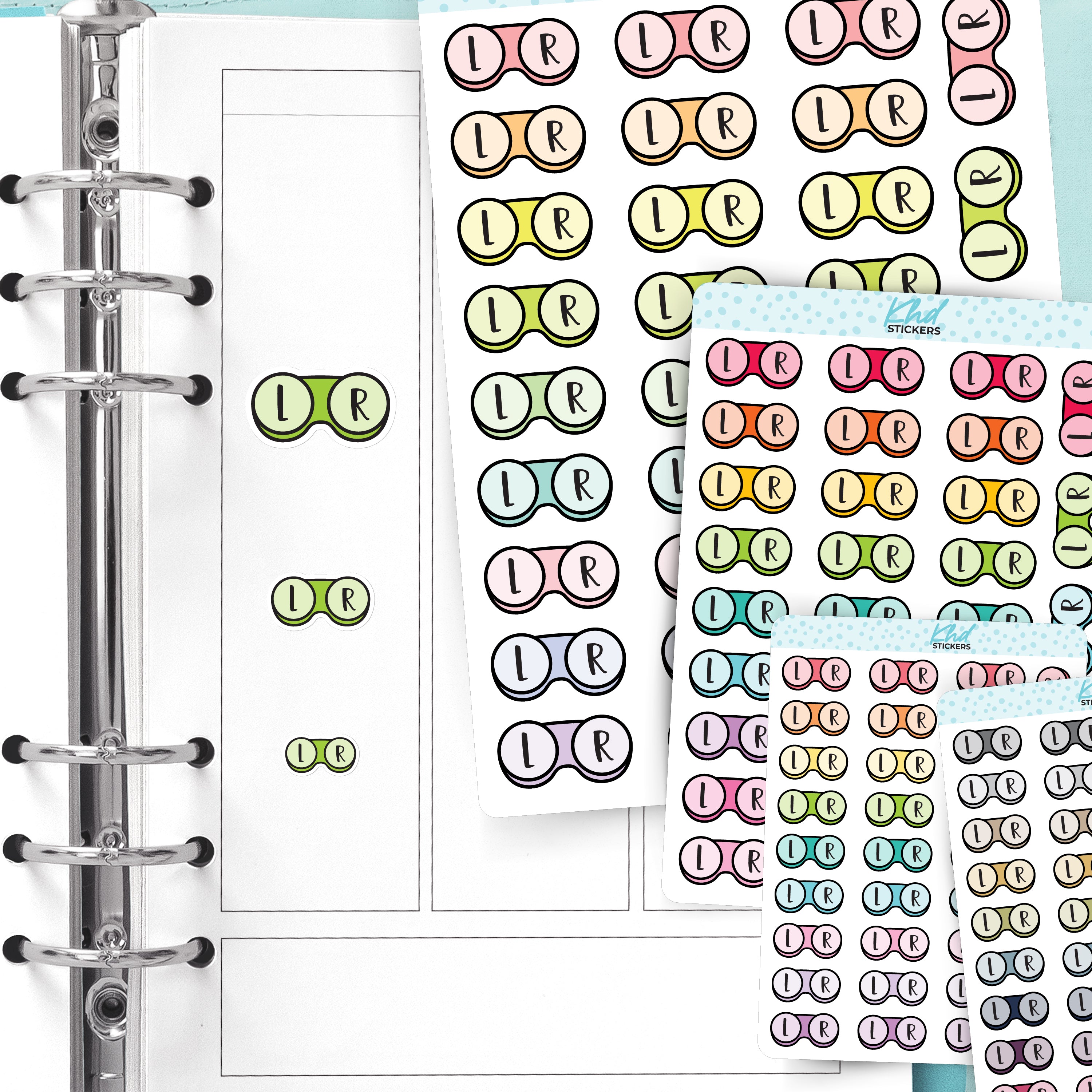 Contact Lens Case Planner Stickers in three sizes and 35 colourways. Removable, smooth-matte finish.