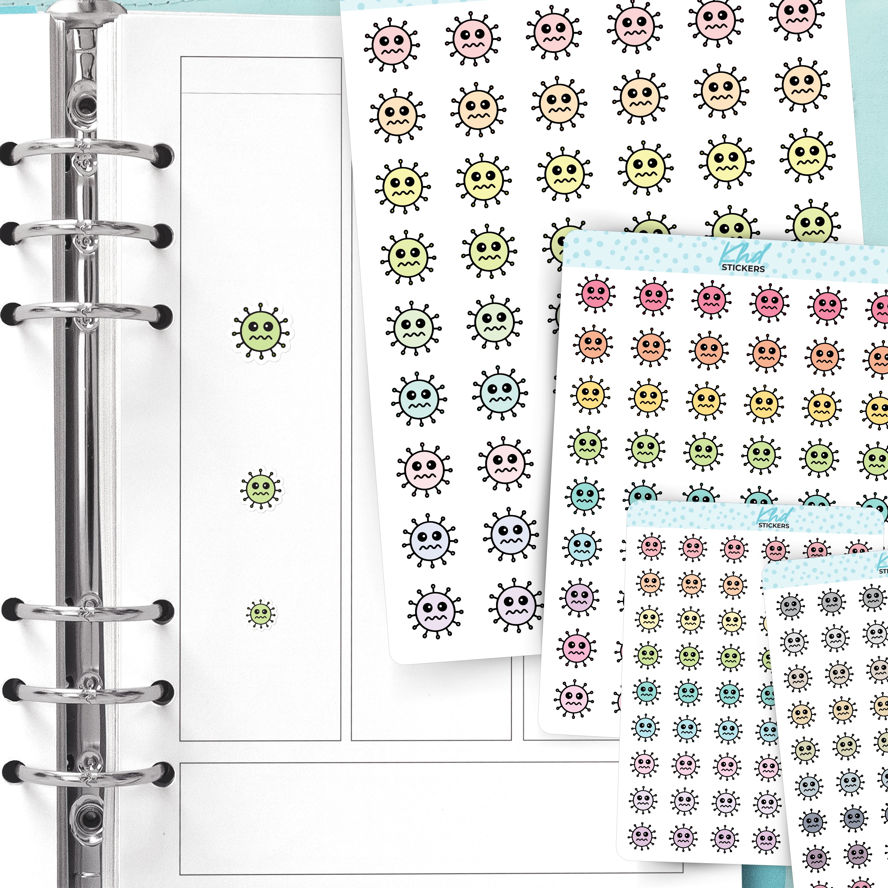 These little virus icons help you note sick days, reminders to rest, or times to take extra care. A lighthearted way to mark health-related events in your schedule. Perfect for tracking recovery days or reminders to sanitise and stay well.