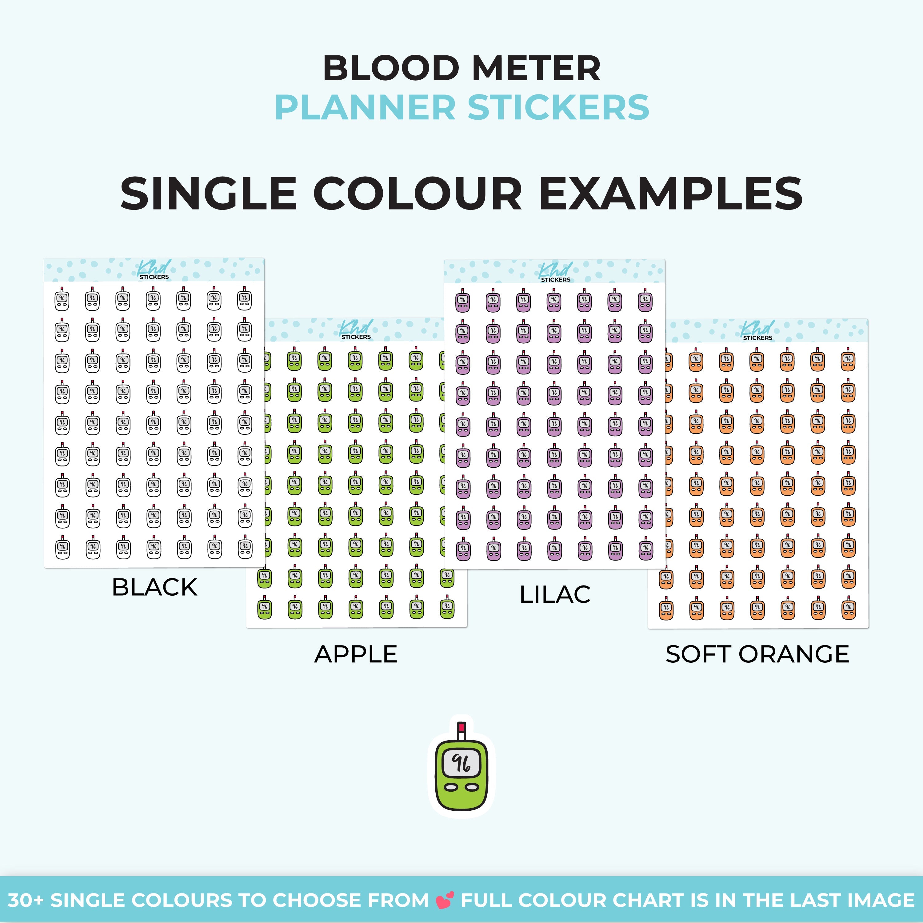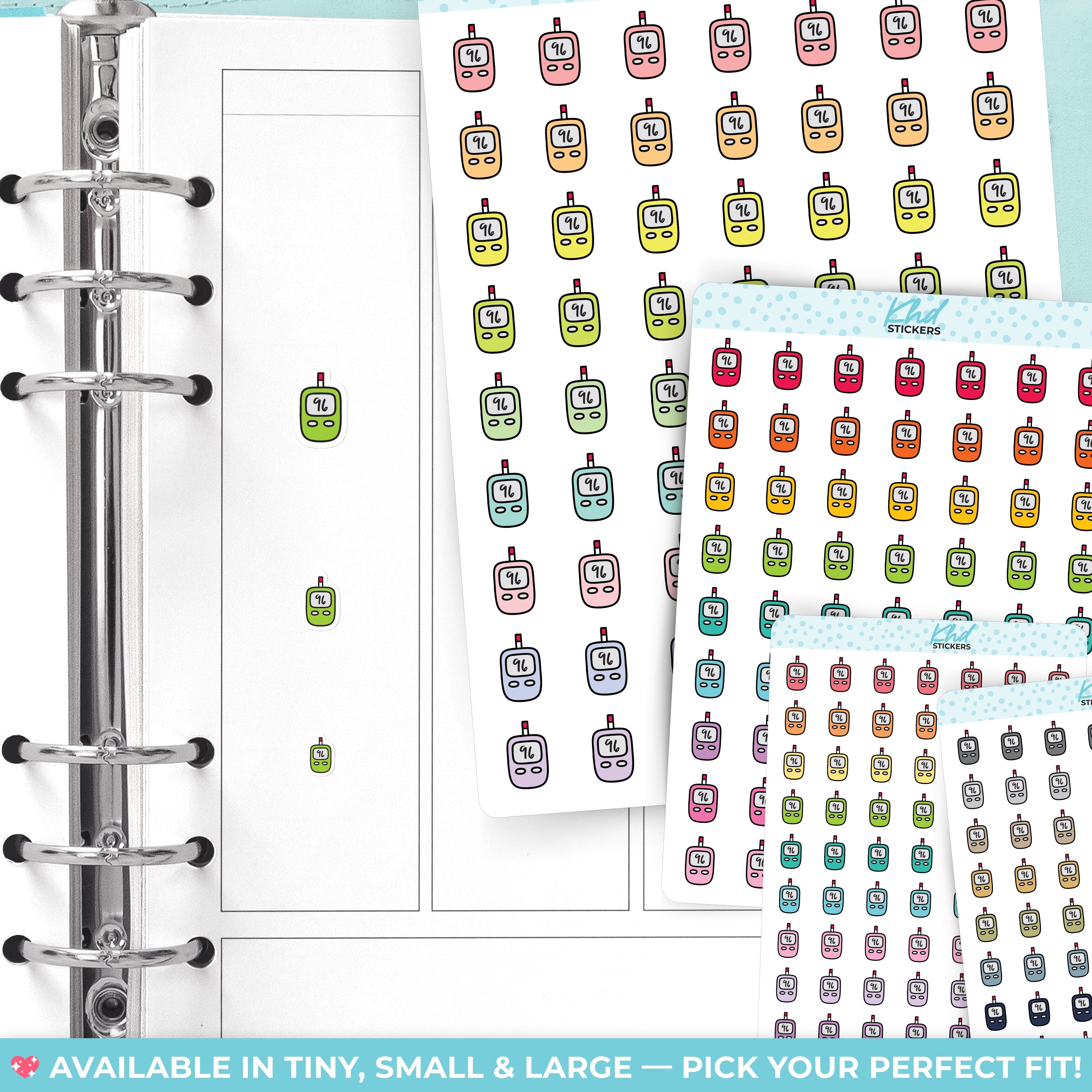 Designed for tracking health stats and medical routines, these blood meter stickers are great for logging readings or appointments. A clear, simple visual that blends neatly into your planner pages. Helpful for anyone monitoring daily health data.
