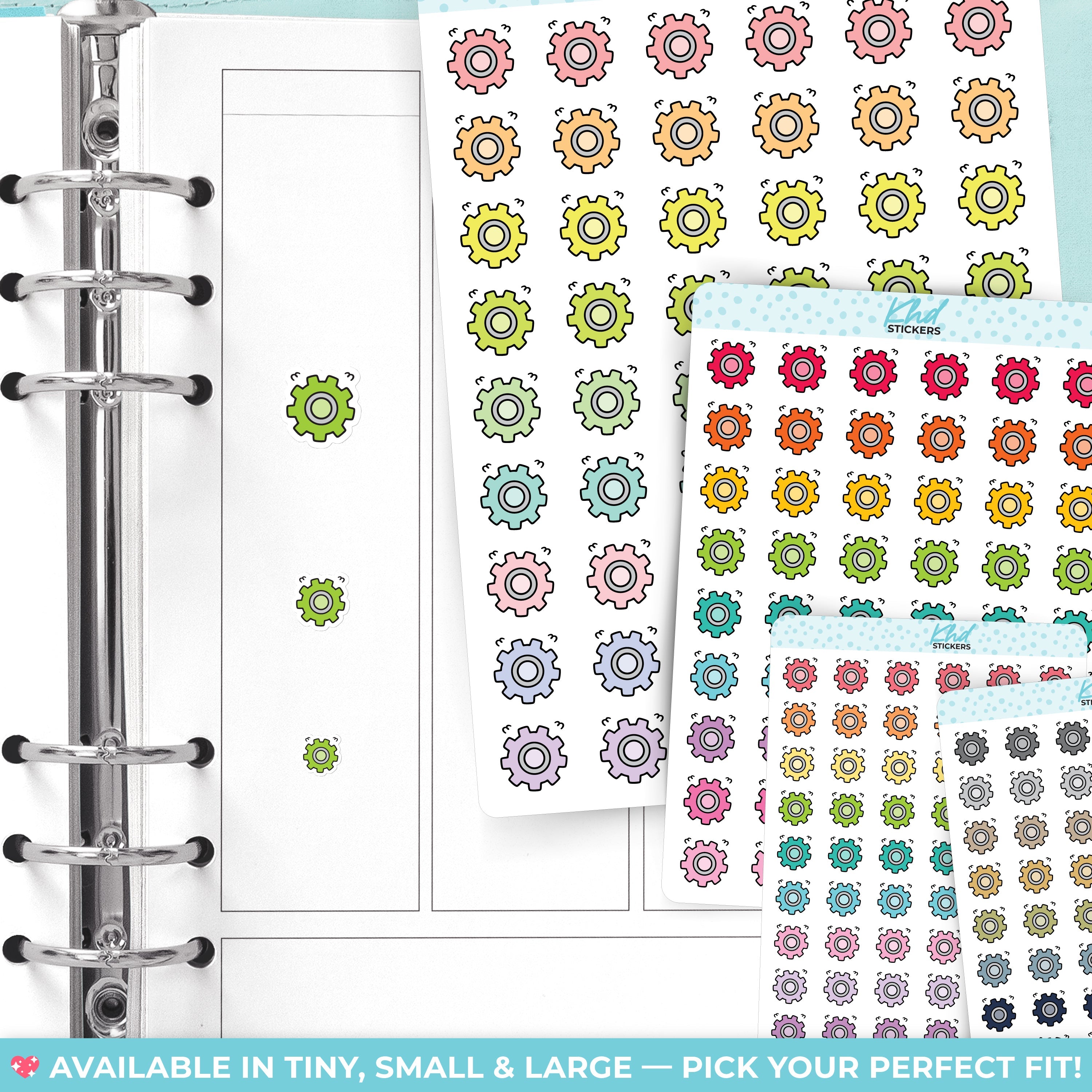 Cogs Planner Stickers in three sizes and 35 colourways. Removable, smooth-matte finish.