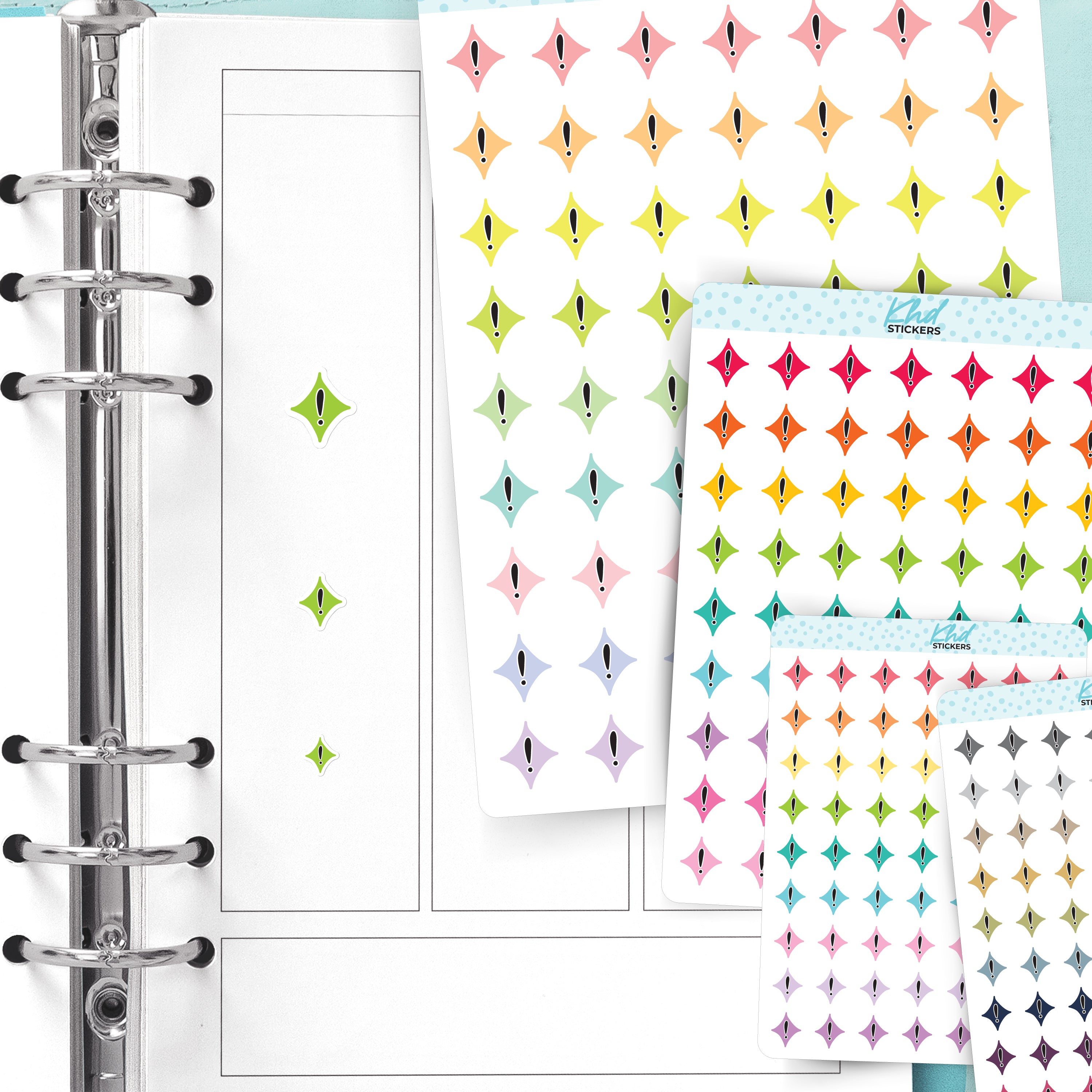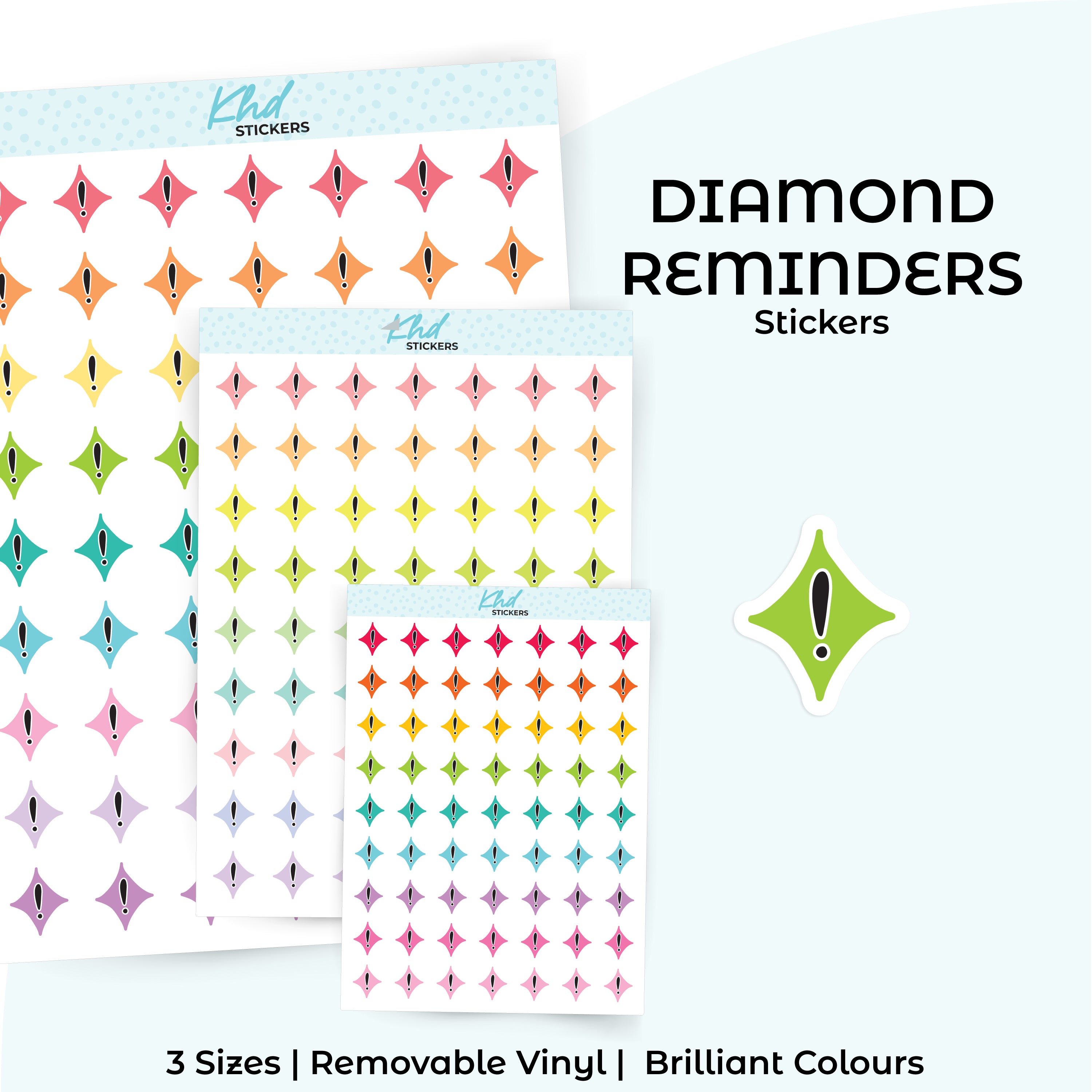 Diamond Reminders Planner Stickers in three sizes and 35 colourways. Removable, smooth-matte finish.