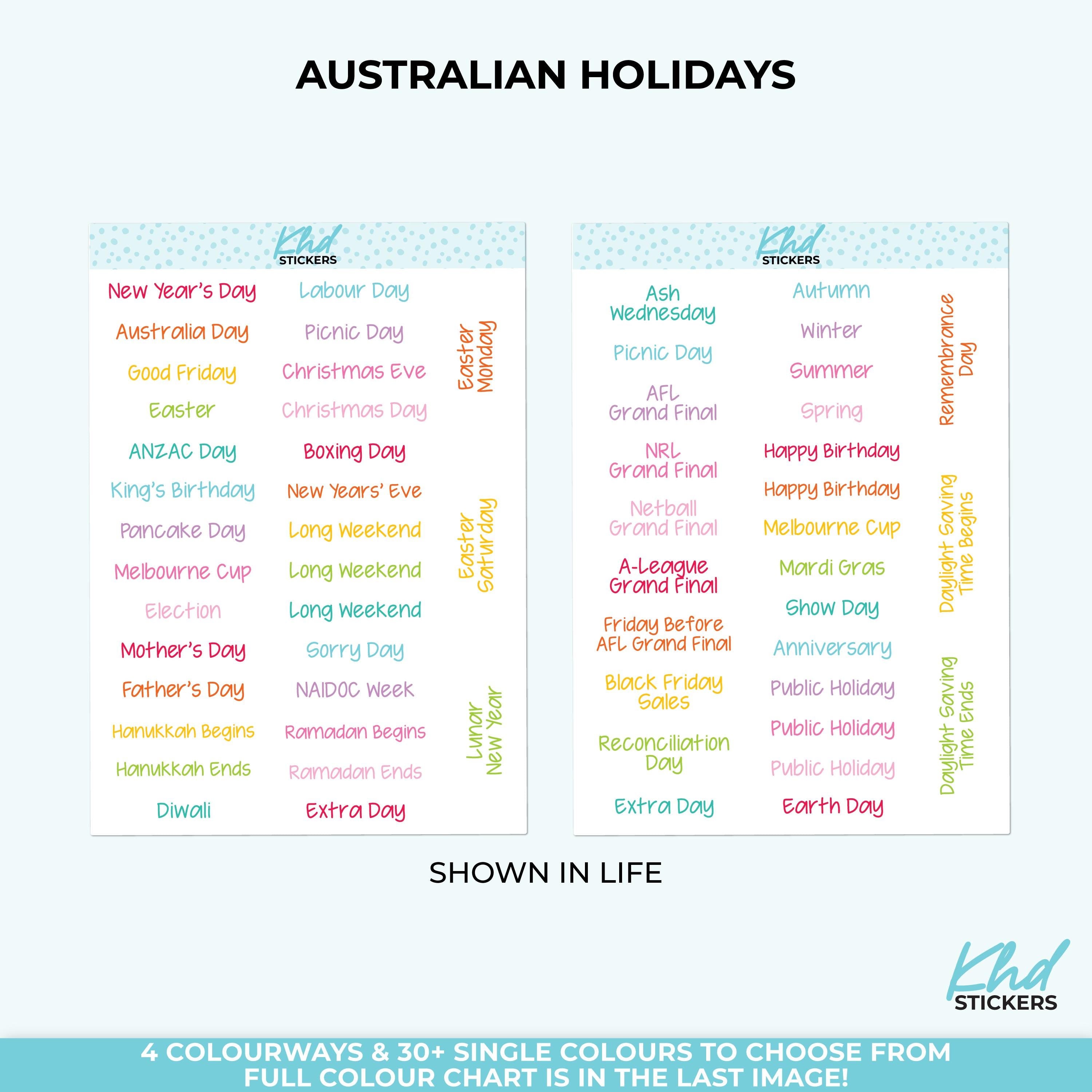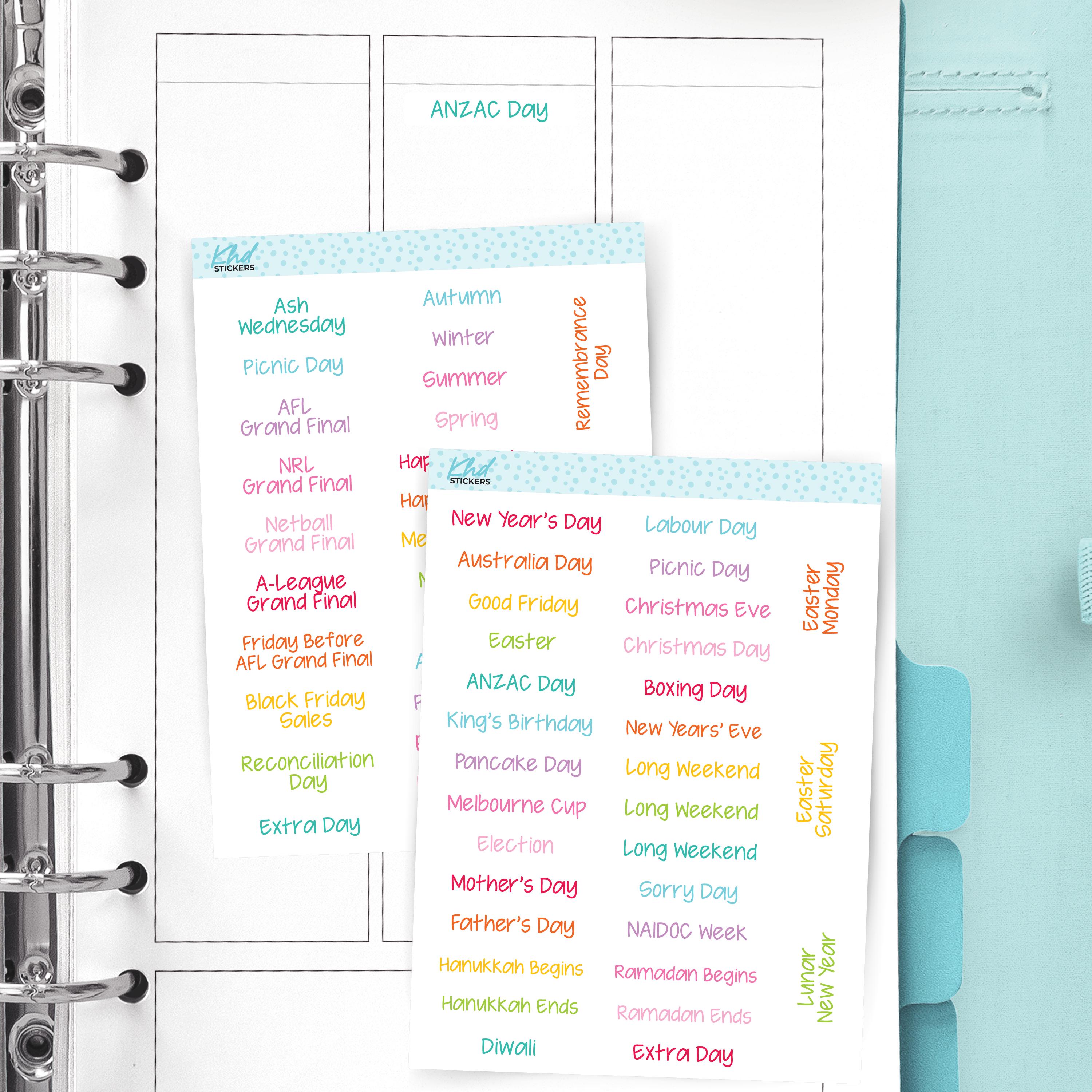Australian Events and Public Holiday Stickers