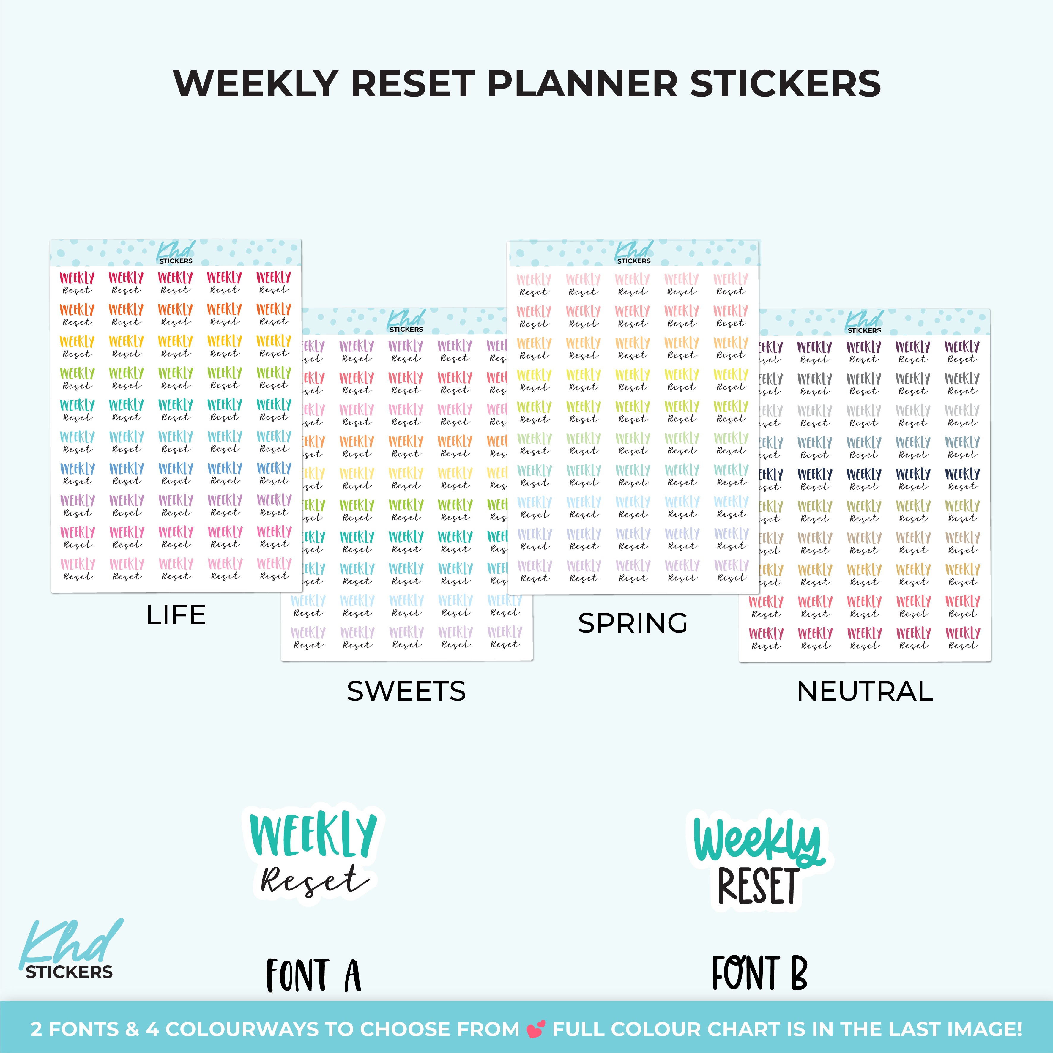 Weekly Reset Planner Stickers. Select from one of 4 colourways, or select a sheet of your favourite colour. A