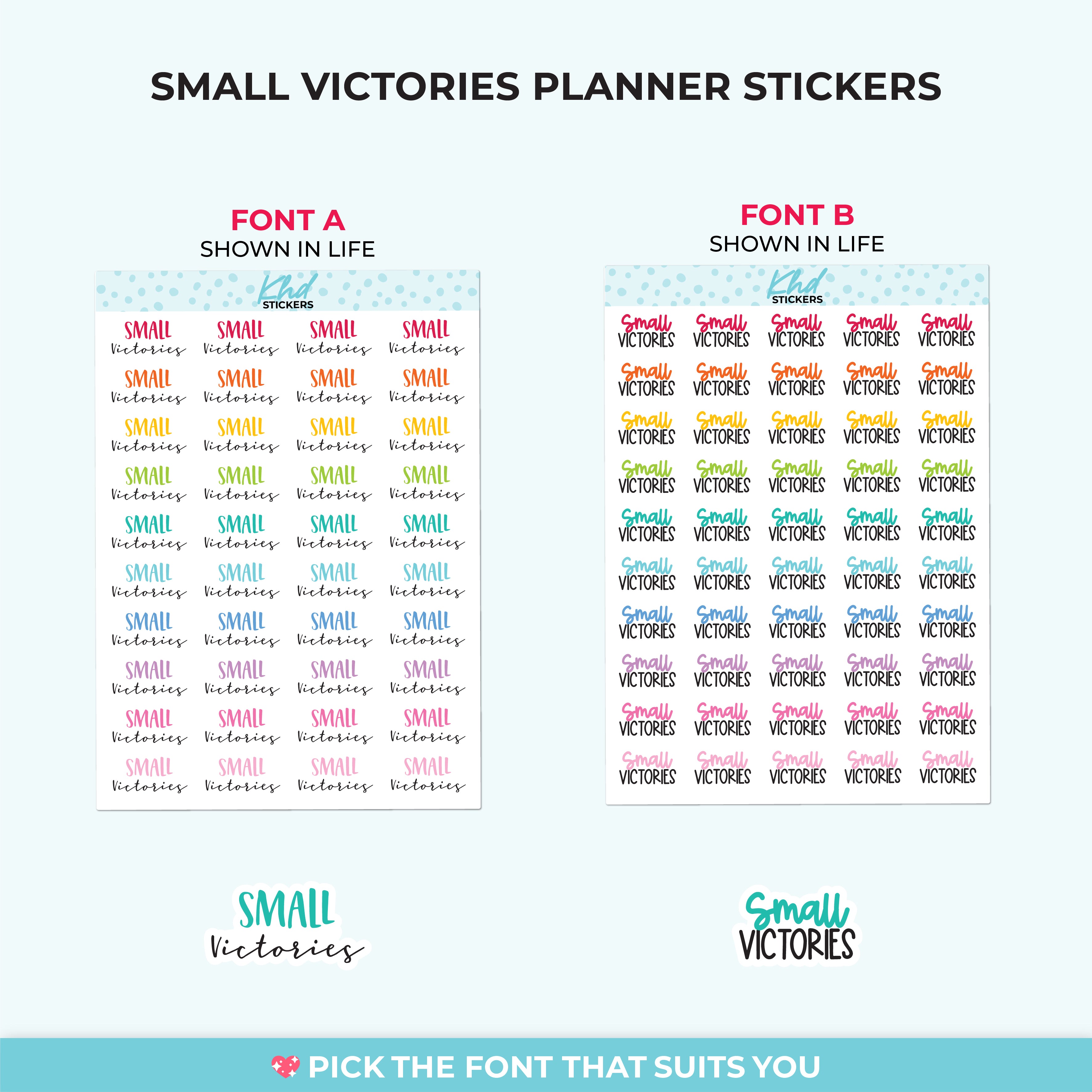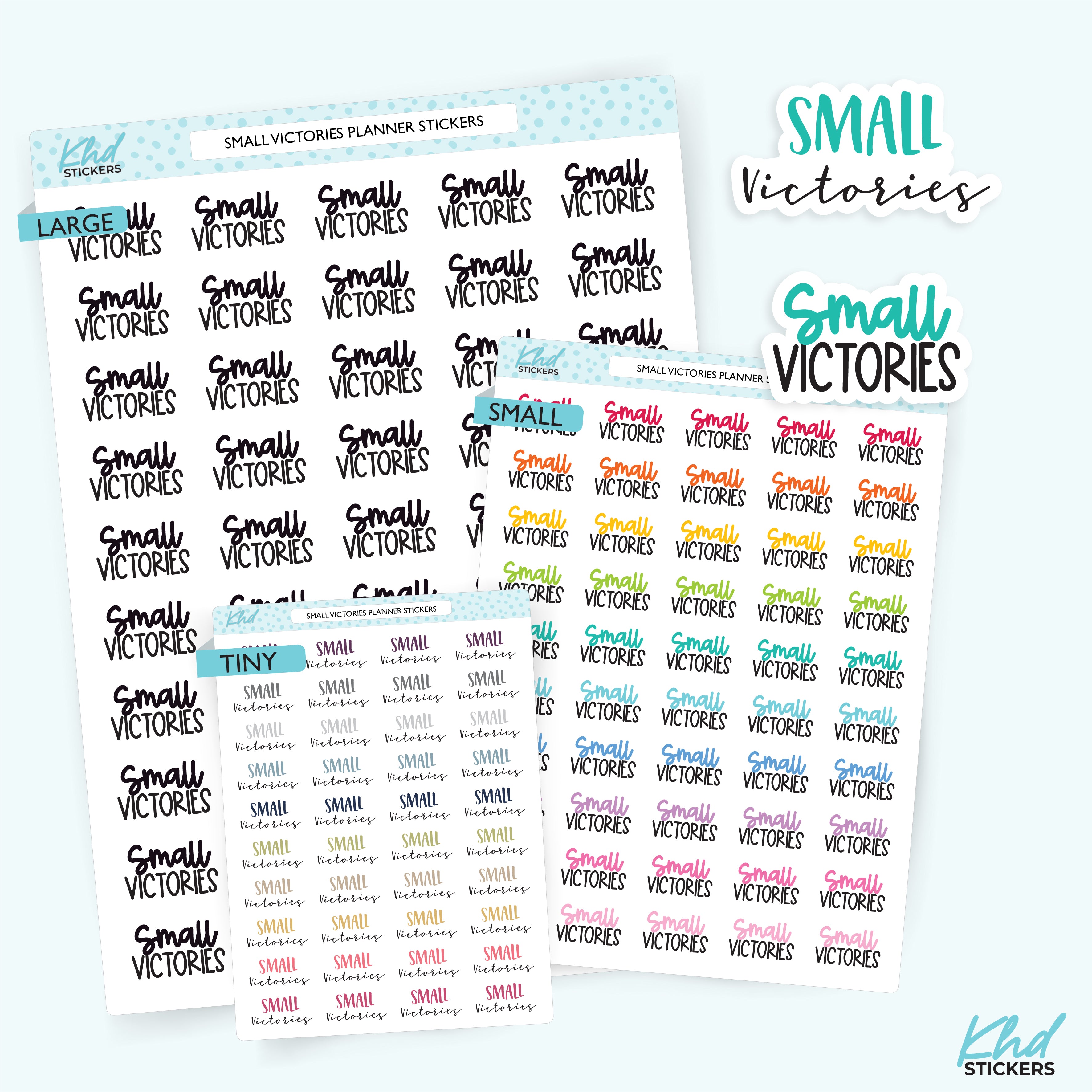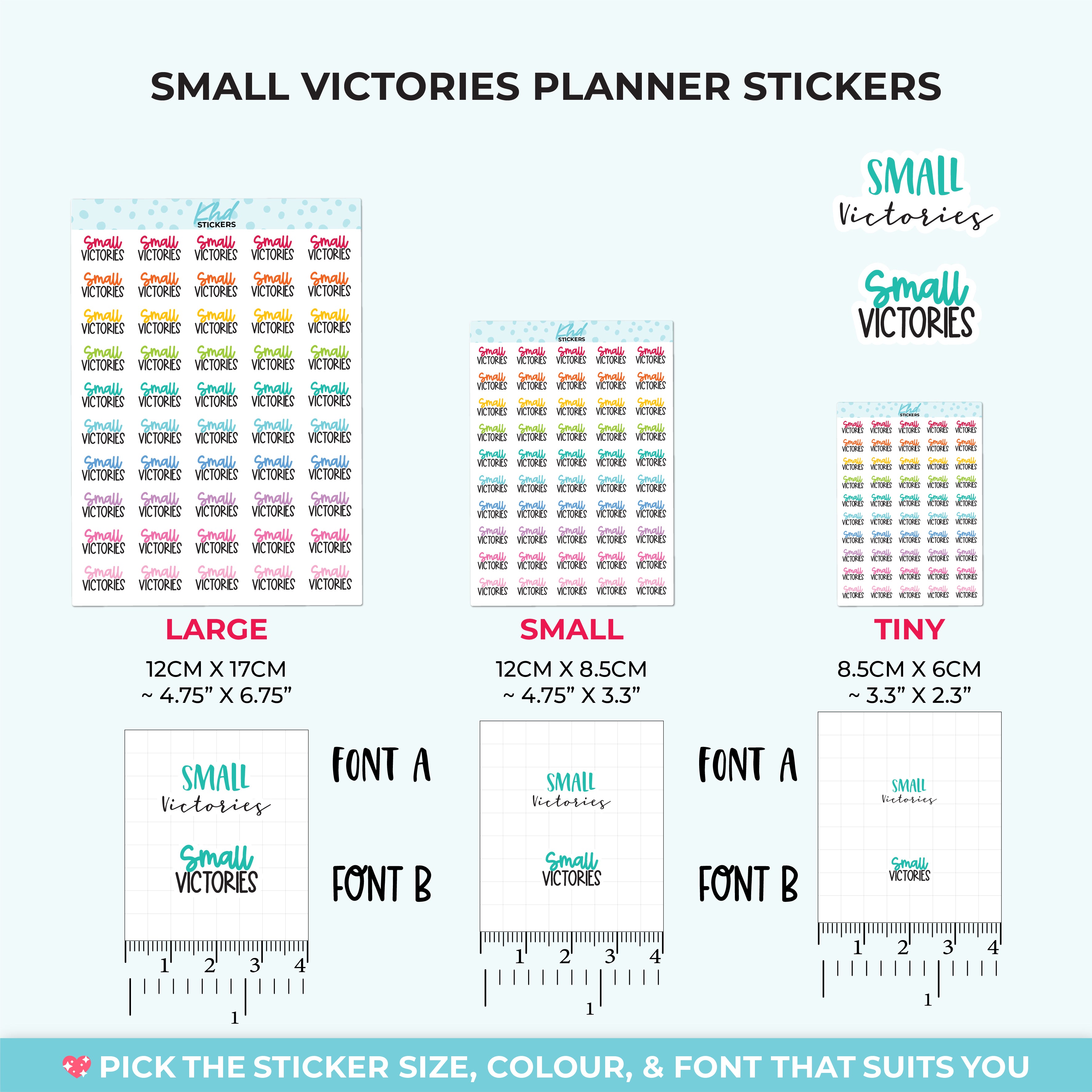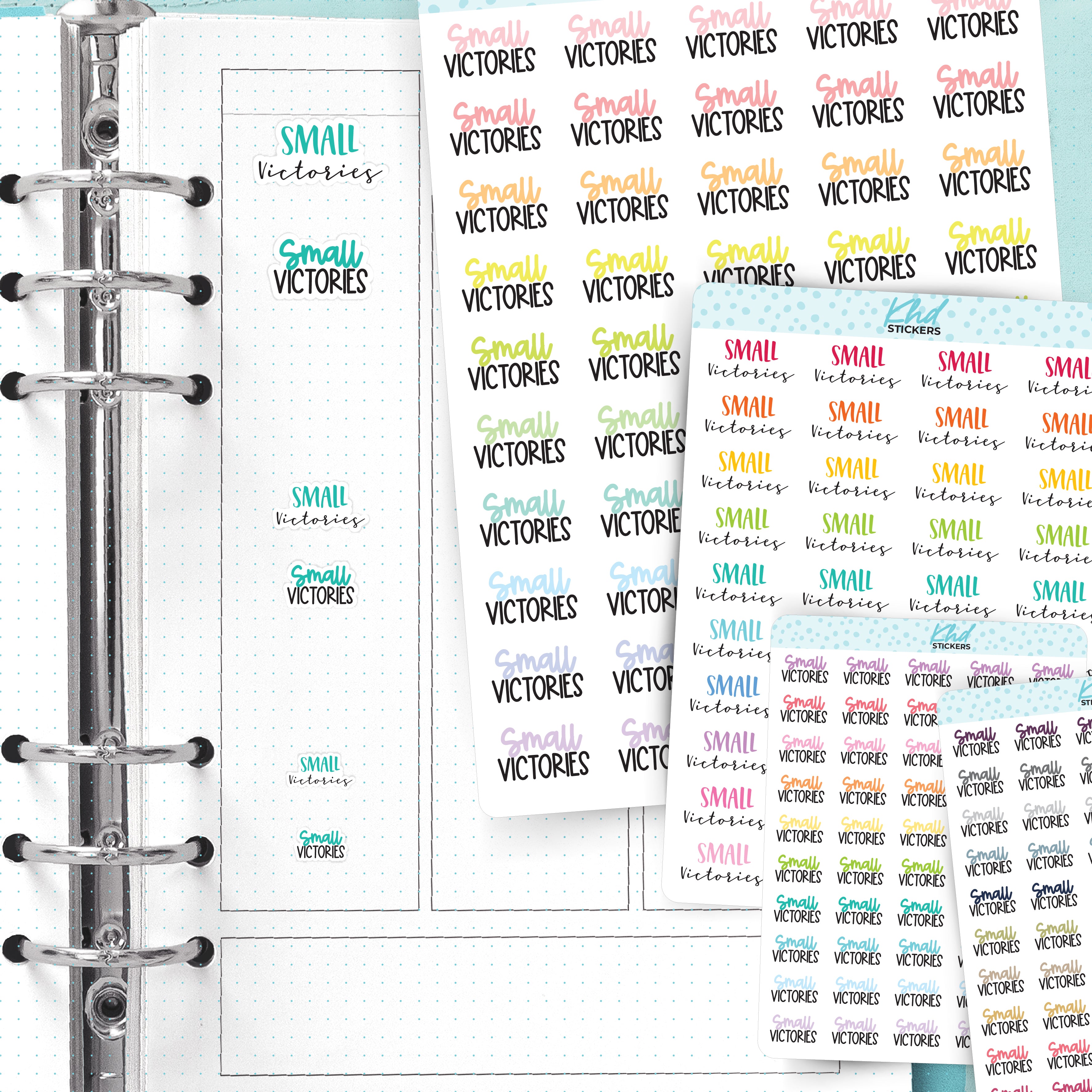 Small Victories Planner Stickers. Select from one of 4 colourways, or select a sheet of your favourite colour. Available in three great sizes making it easy to match your planning style.