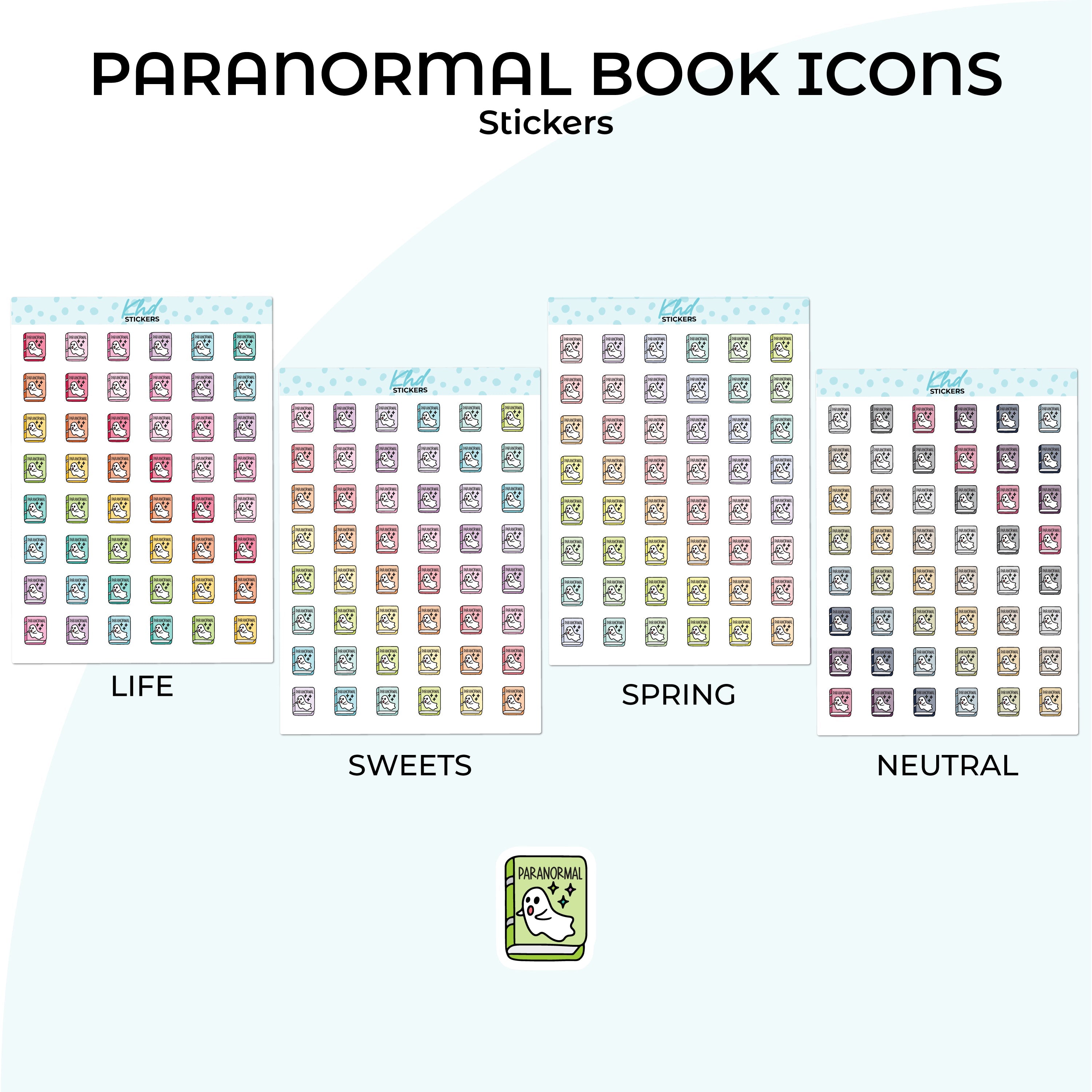 Cute functional paranormal book icons for planners, diaries, and journals.