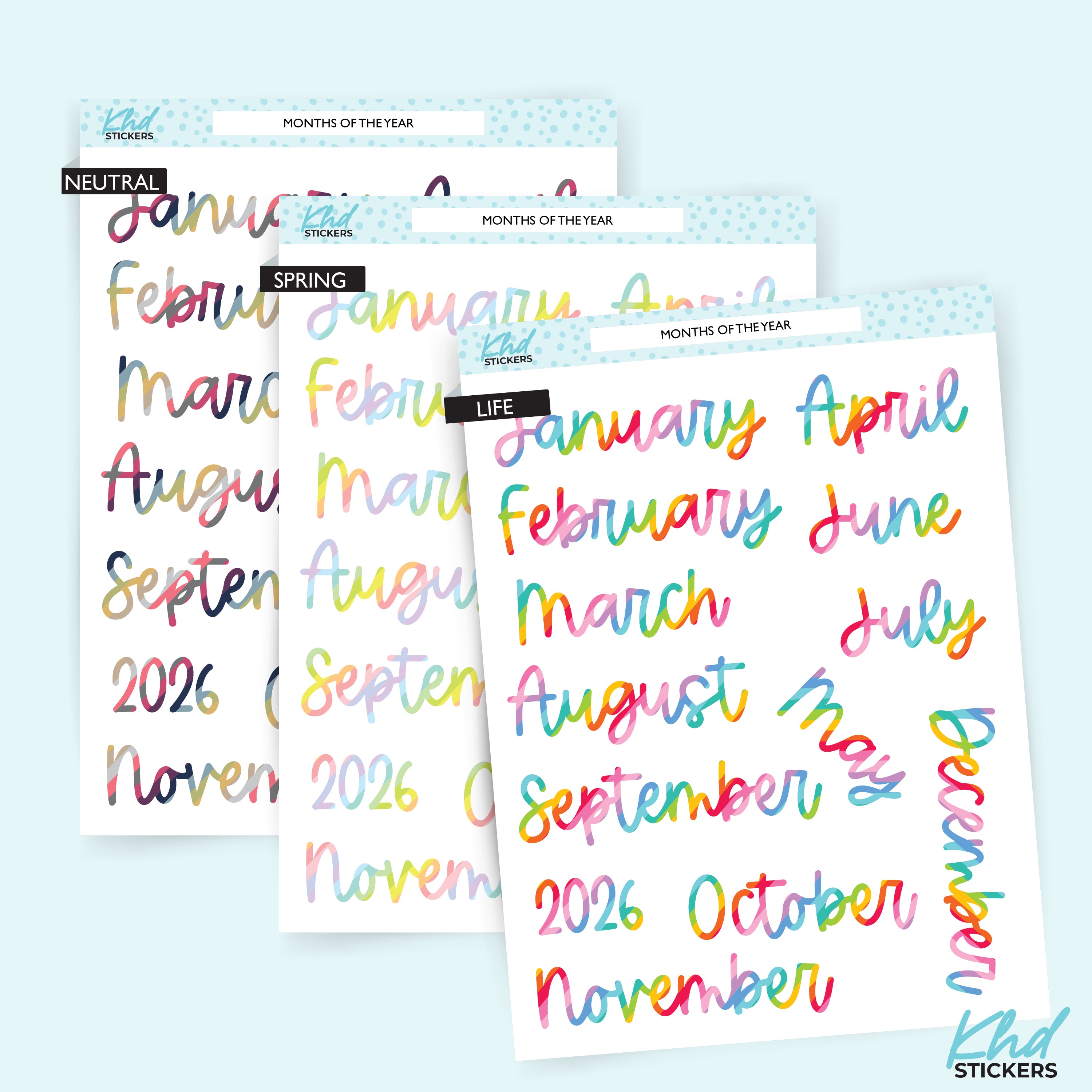 • Sticker Size: Each month varies - the widest, September is 7.2cm wide x 2.5cm tall. May is 3.6cm wide x 2.4cm tall.