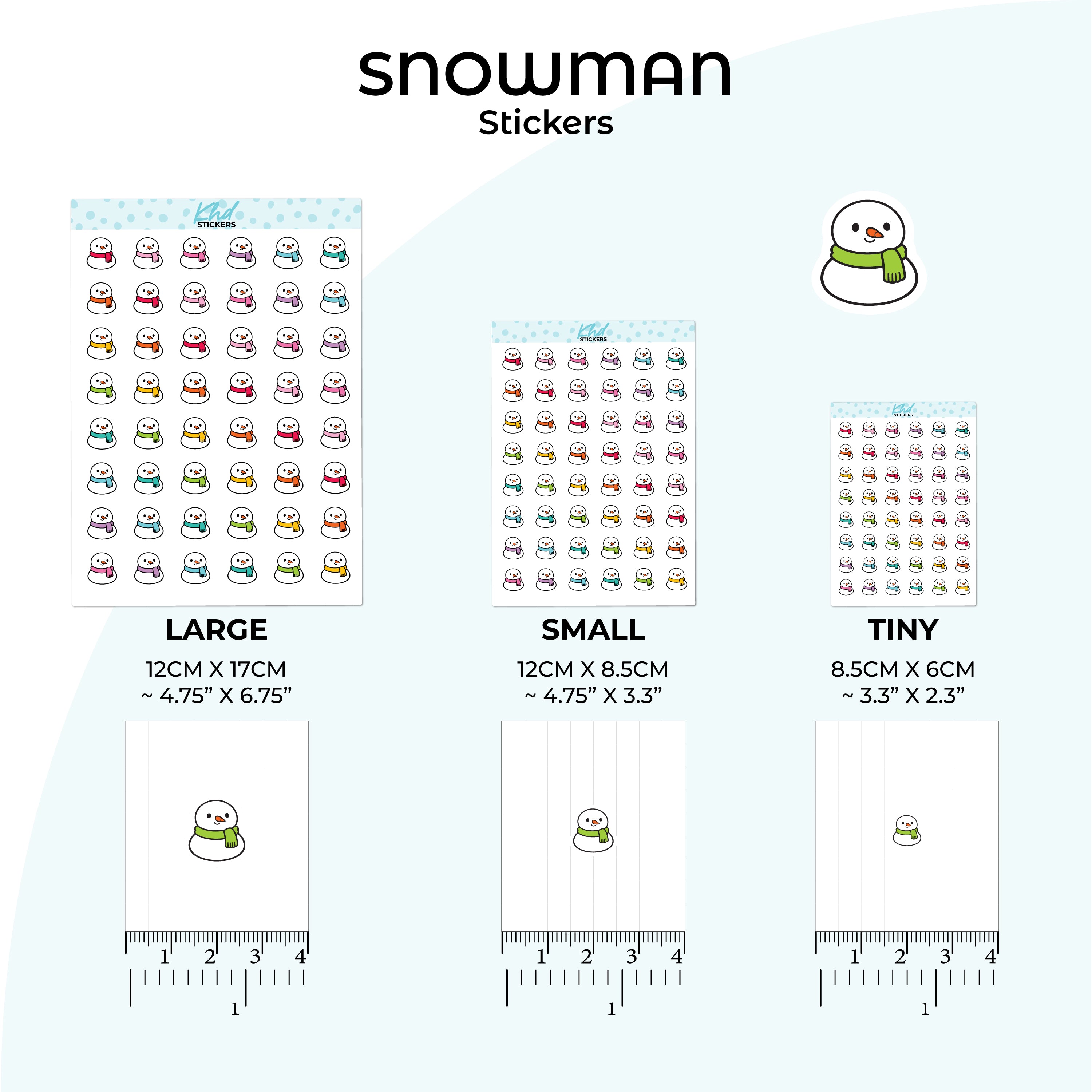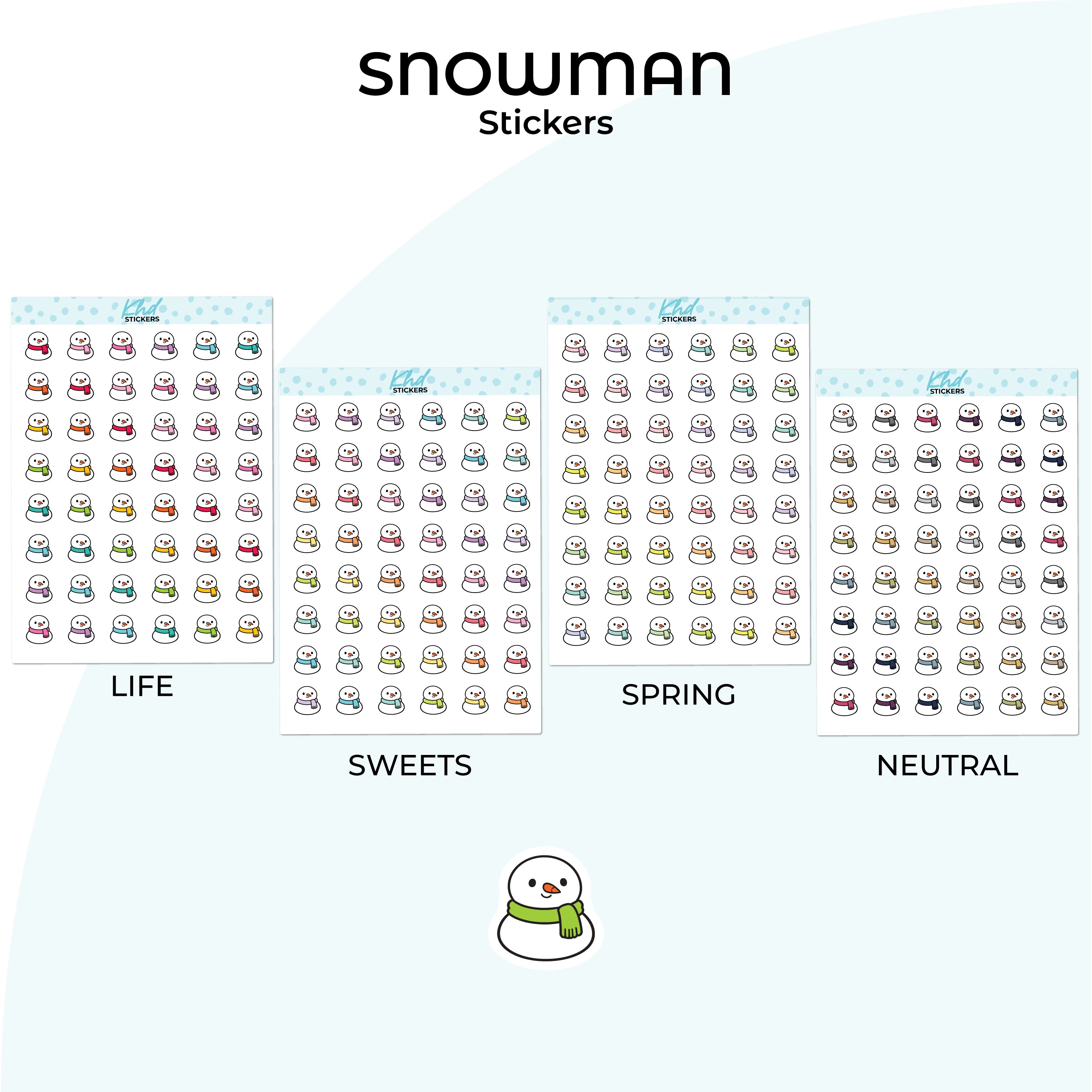 Cute snowman stickers. Use for the weather, a trip to the snow, or just for cuteness.